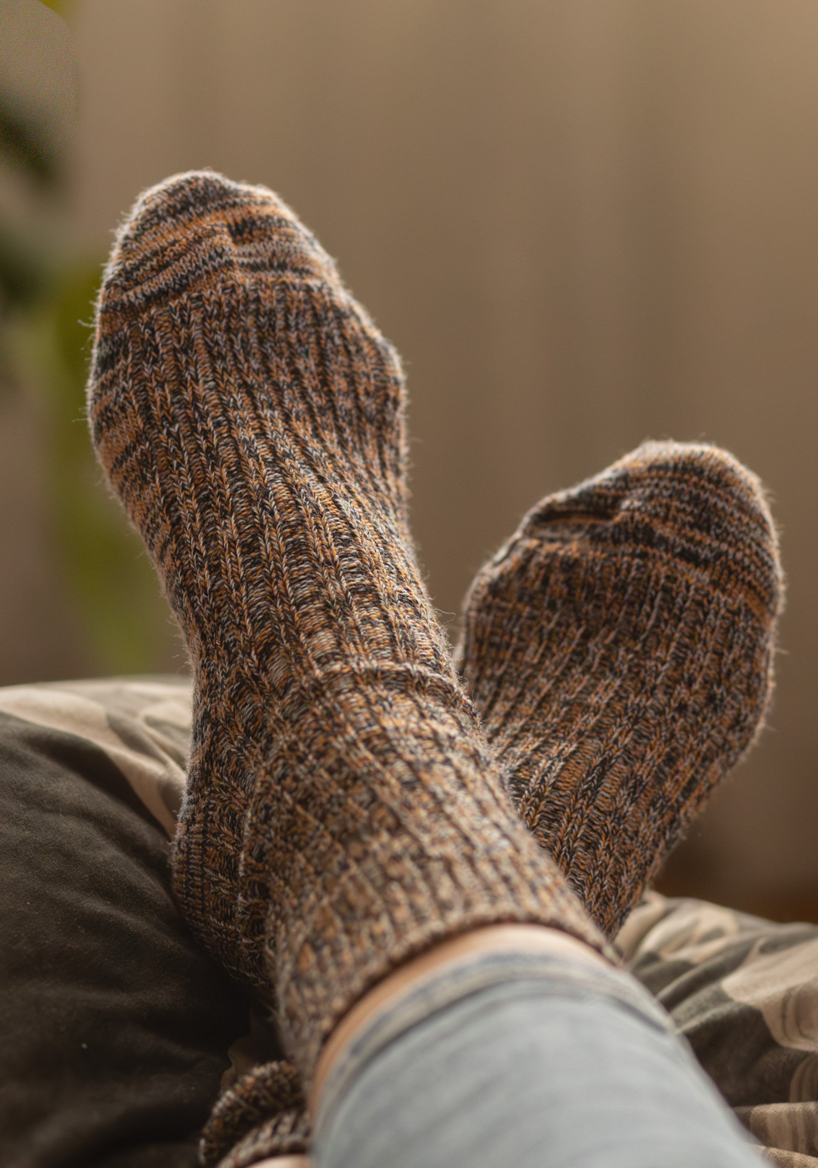 Șosete Thick din lână merinos - Burnt Amber Melange