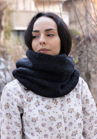 Fular circular femei din alpaca și lână Highland - Inji Black