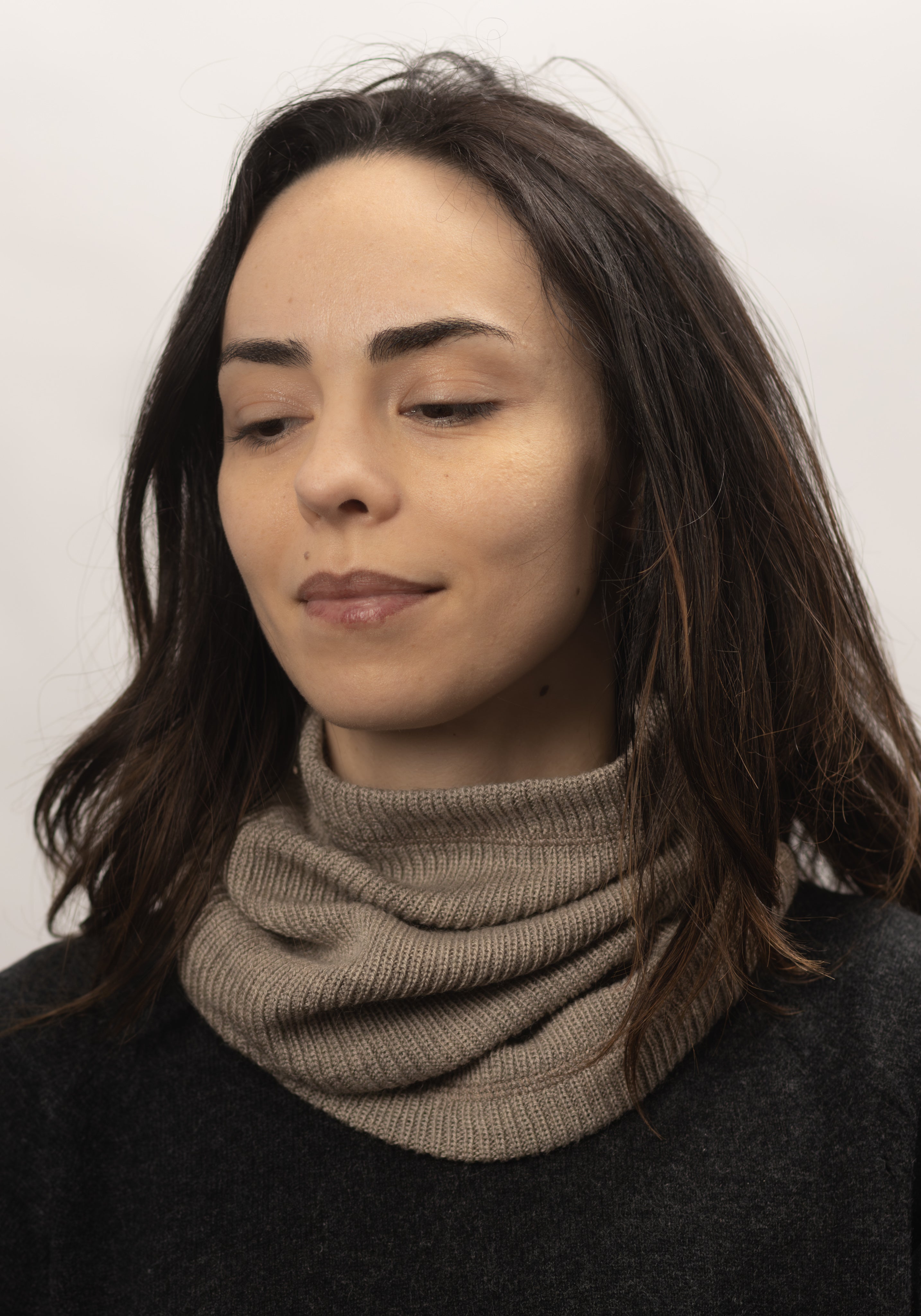 Fular tubular din lână merinos rib, moale și călduros. Țesătură elastică, plăcută pe piele – protecție naturală în zilele reci.