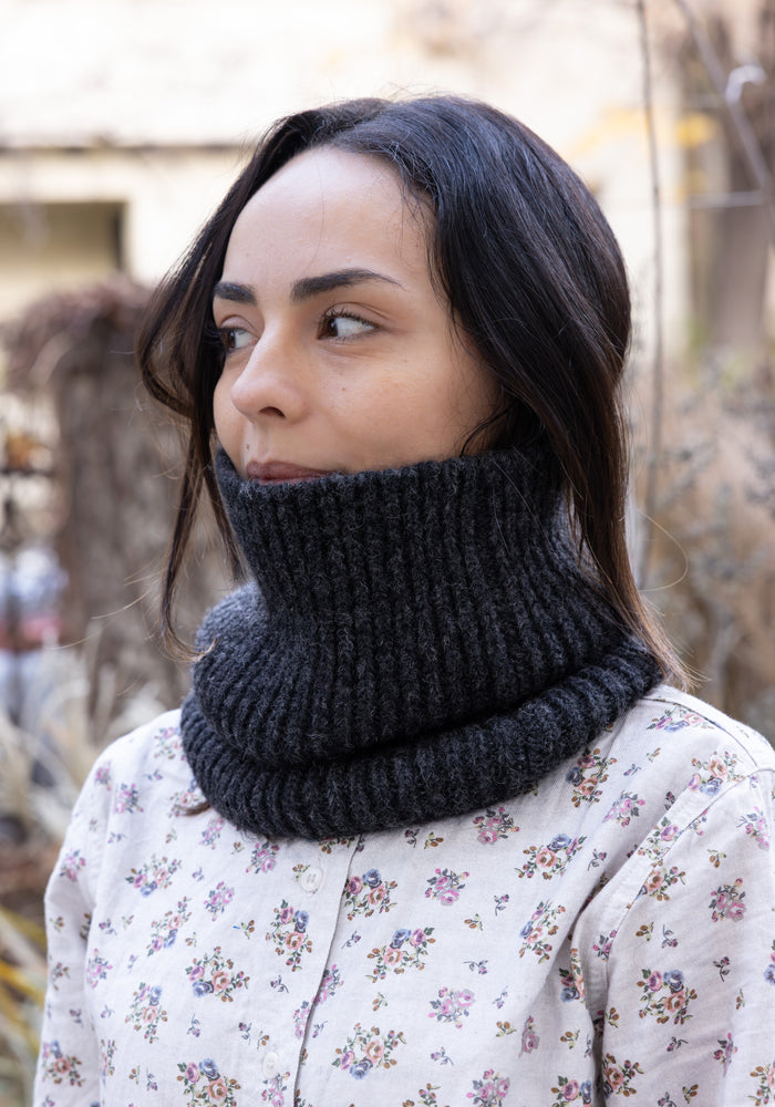 Fular circular lână merinos - Dark Ink