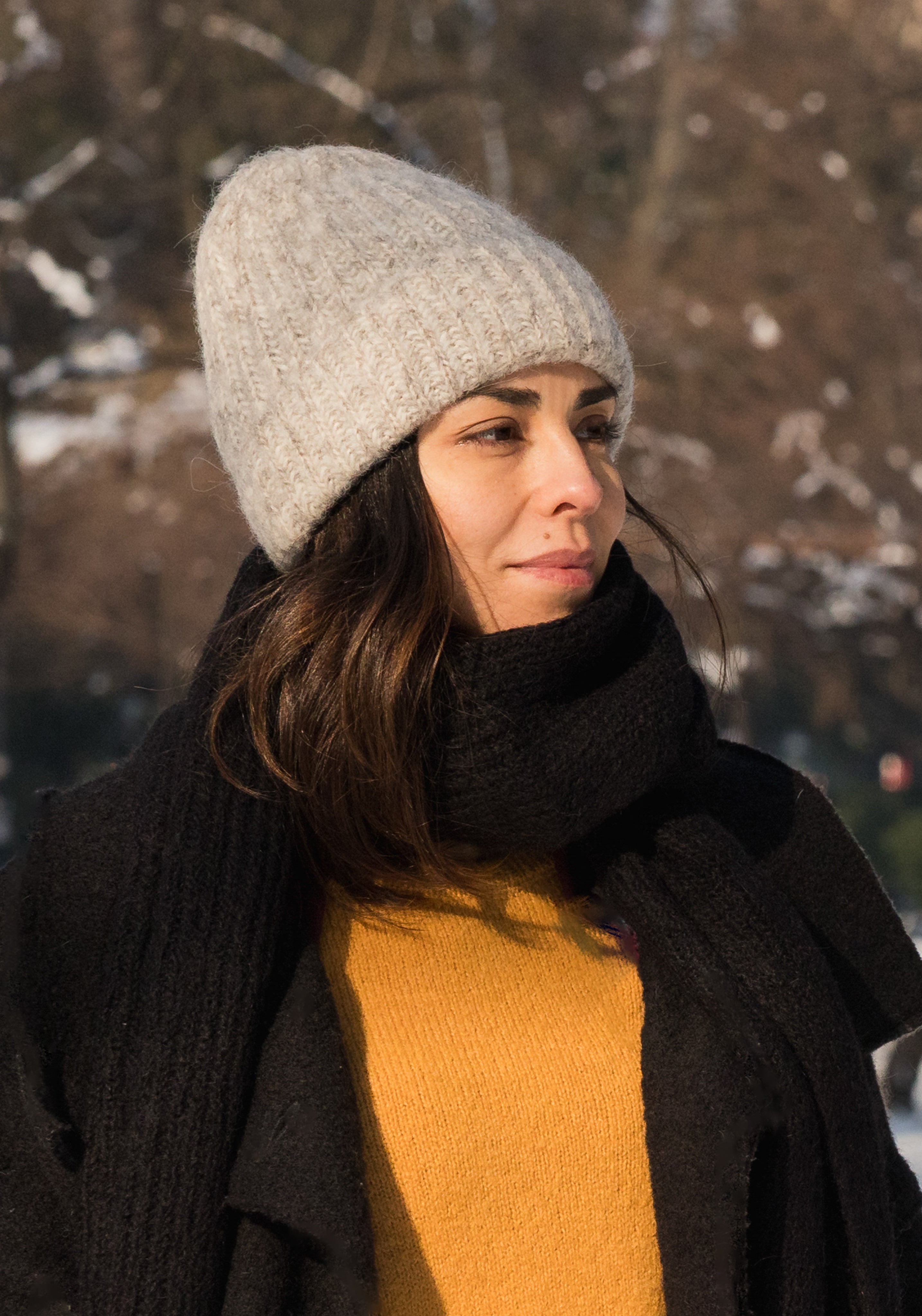 Fular femei din alpaca și lână Highland - Dune Black