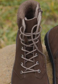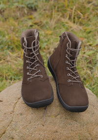 Ghete barefoot din piele întoarsă, căptușite cu lână merinos feltuită. Le recomandăm în special pentru toamnă târzie și iarnă.