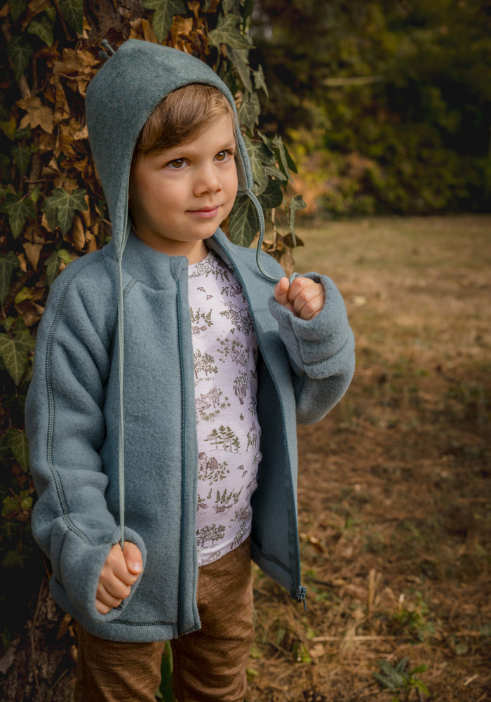 Jachetă fleece cu mănuși din lână merinos - Balsam Green