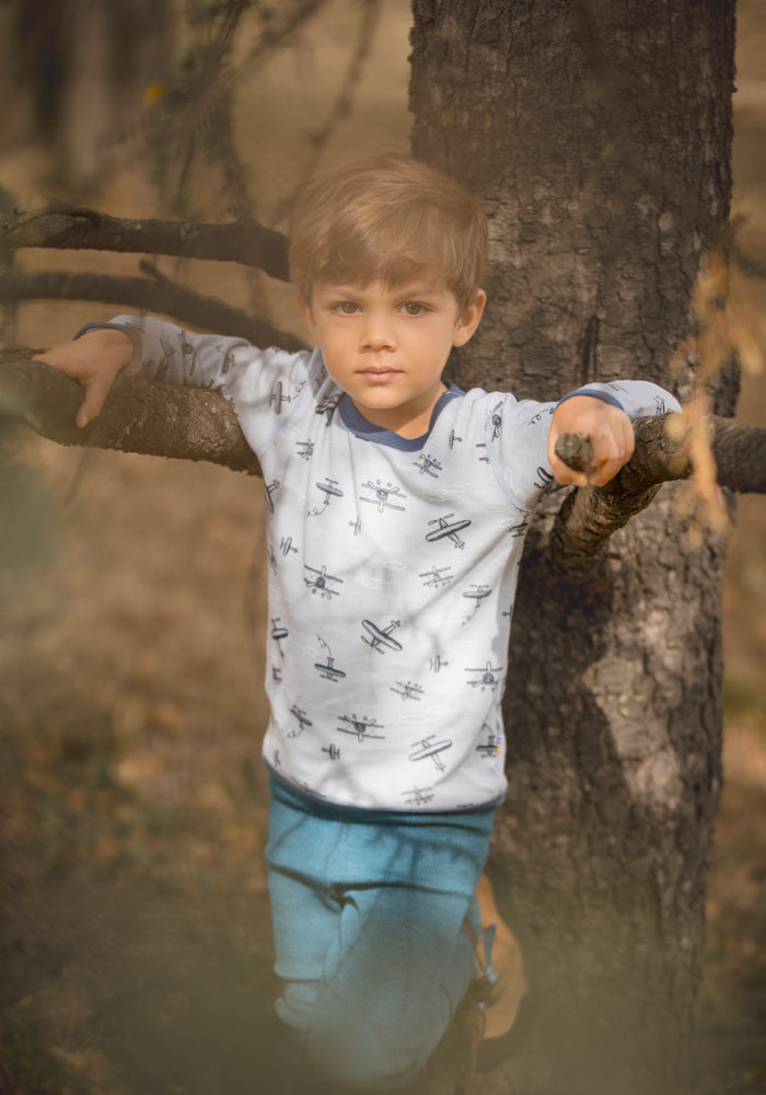 Bluză din lână merinos și bambus - Propeller Light Blue
