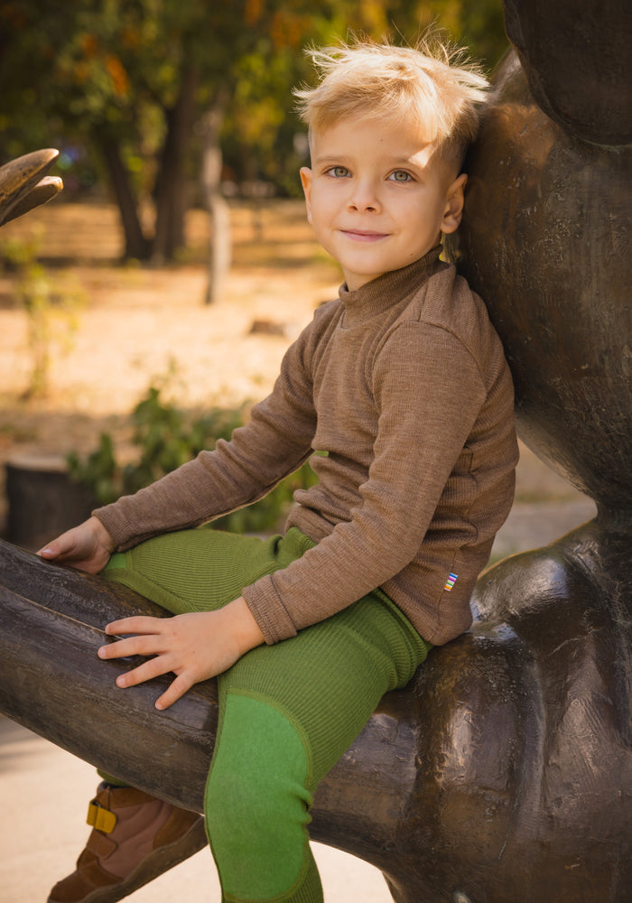 Boxeri băieți din lână merinos și mătase - Beige Melange