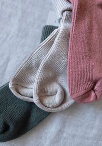Șosete subțiri din bambus organic, ce pot fi purtate întinse sau rulate.