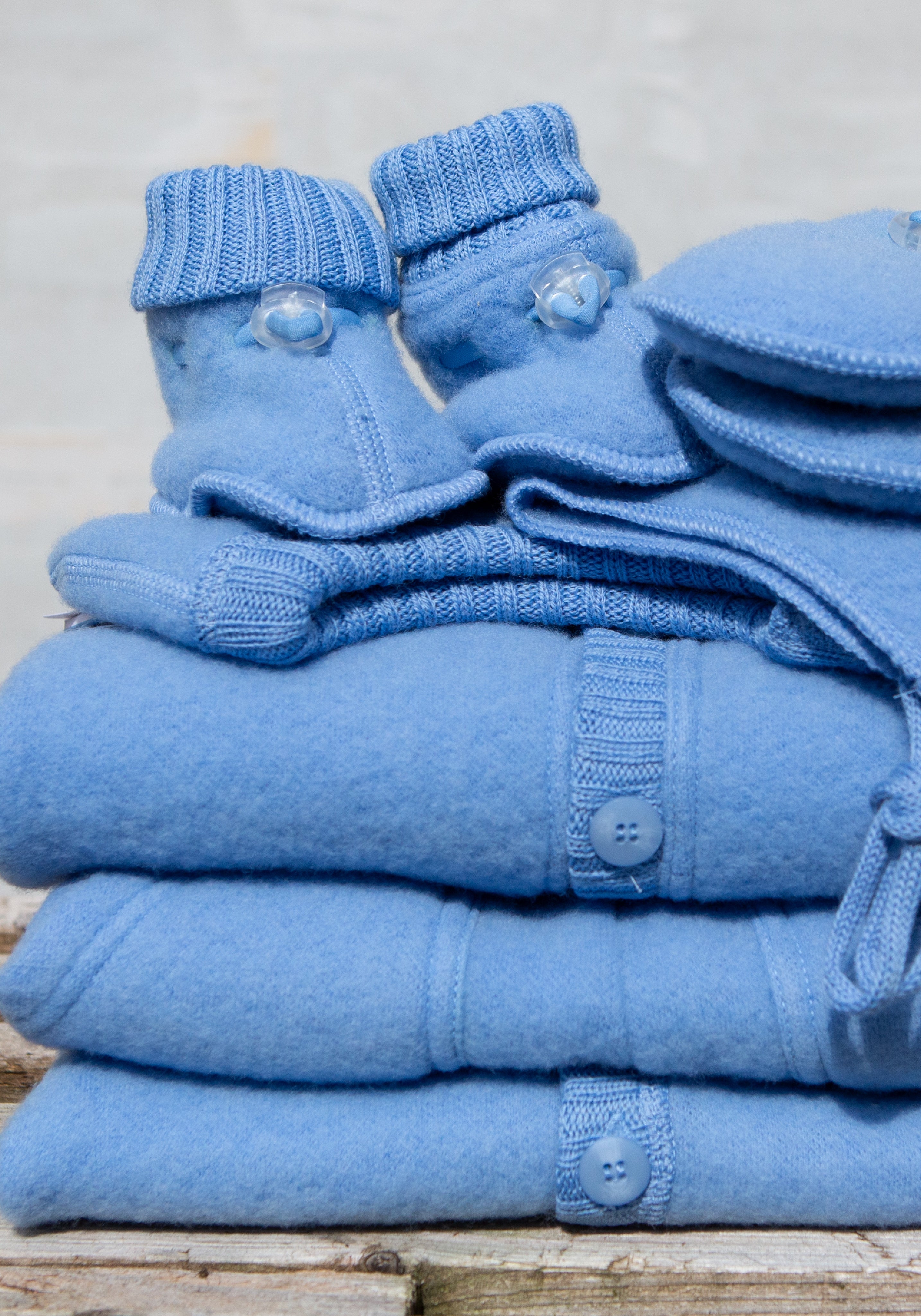 Cardigan fleece din lână merinos - Blue Allure