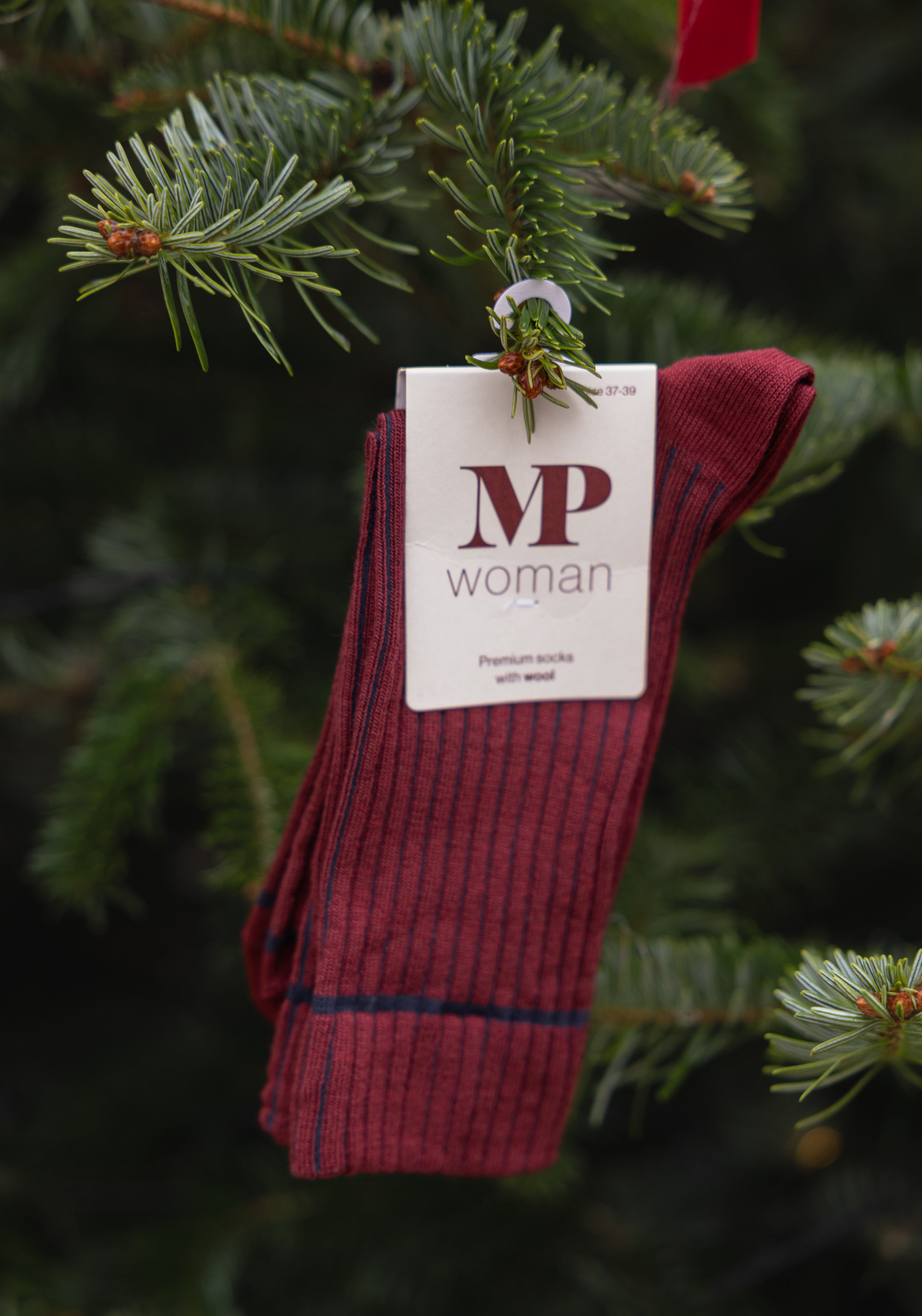 Șosete extrafine femei din lână merinos și bumbac - Magny Wine Red