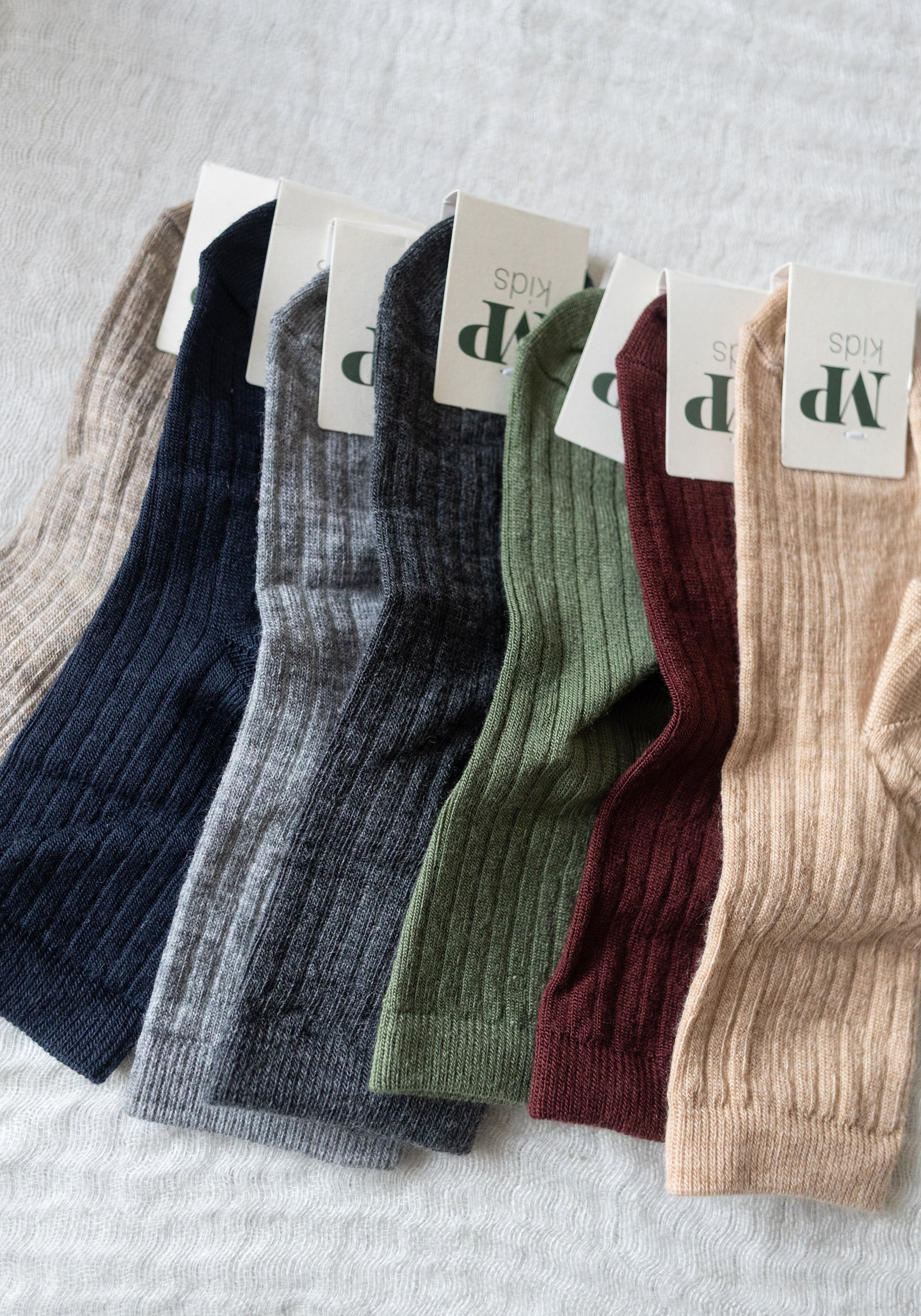 Șosete Rib din lână merinos (copii și femei) - Olivine