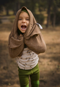 - poliamida este folosită doar între straturile de lână, pentru a le fixa, practic nu este în contact cu pielea copilului