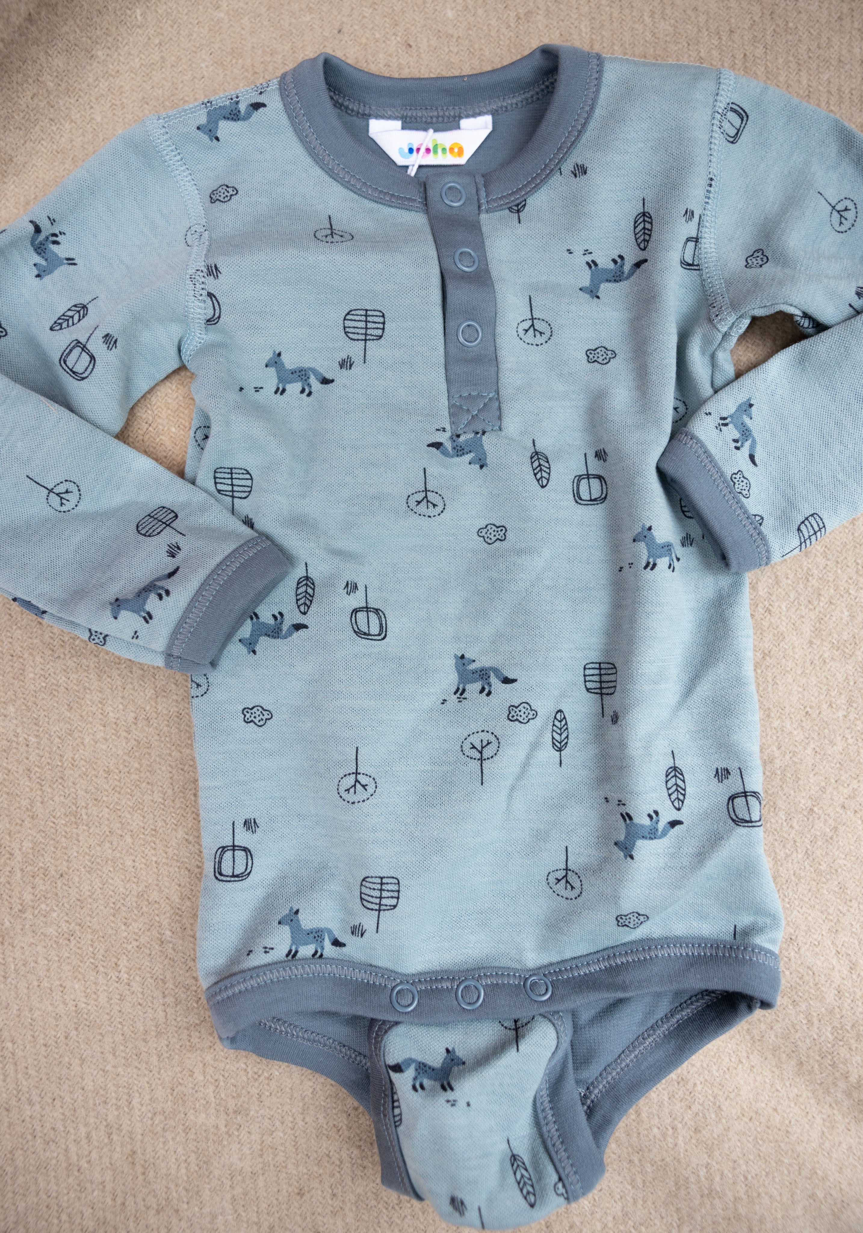 Body din lână merinos și bumbac - Fox Blue