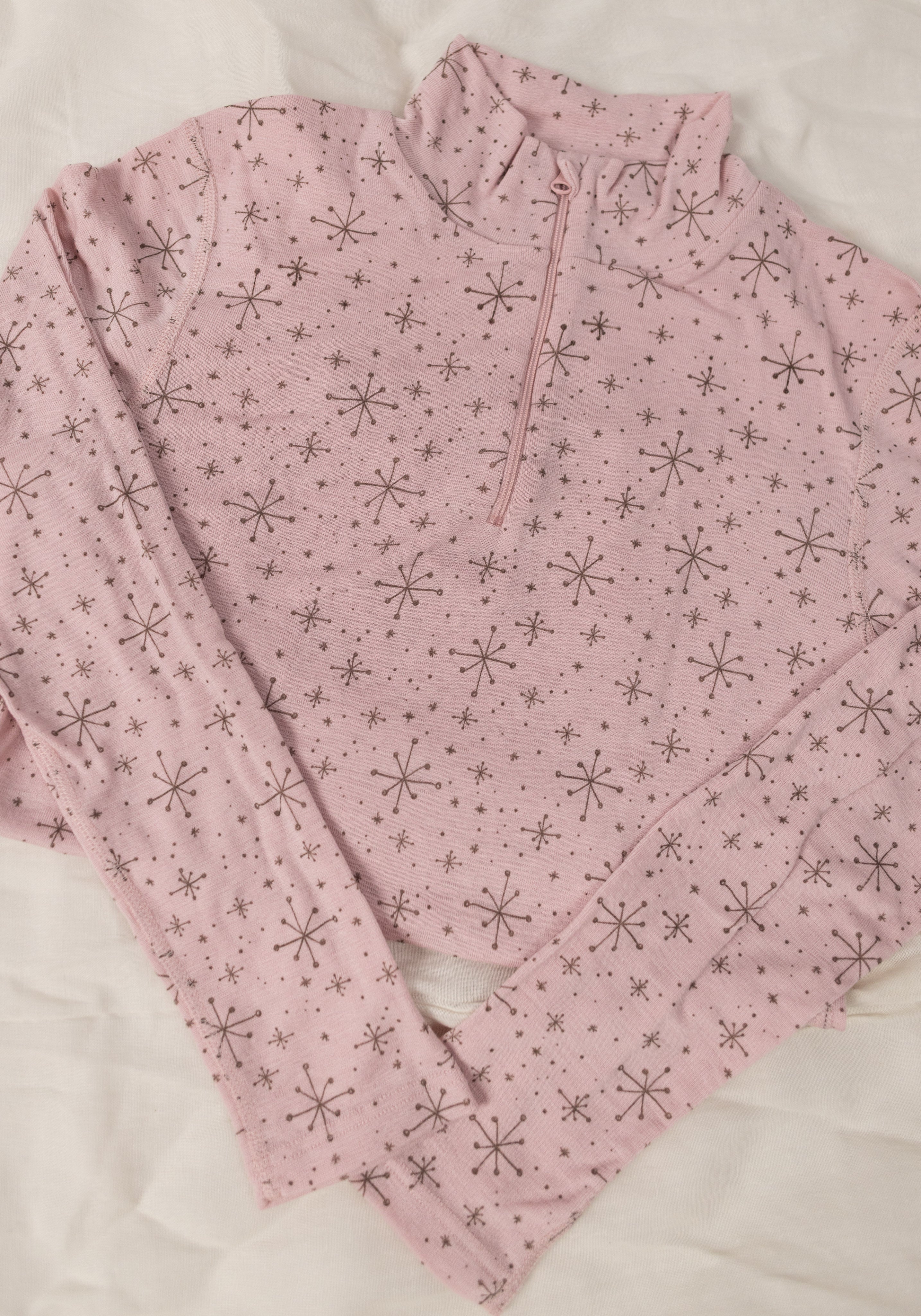Helancă femei din lână merinos - Handdrawn Snowflake Rosa