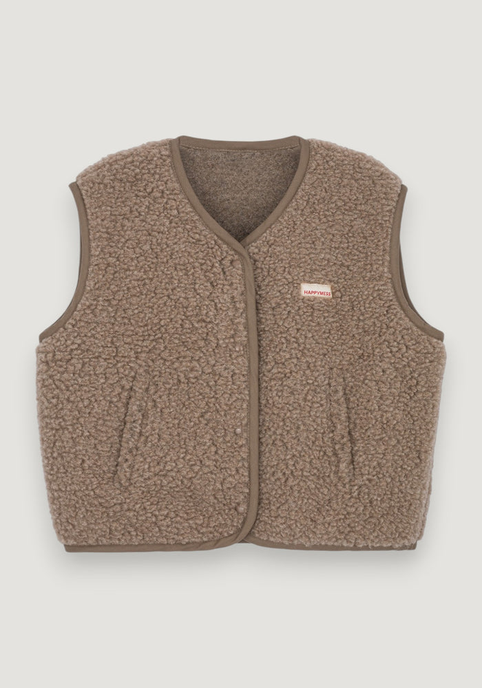 Vestă fleece din lână merinos - Teddy Chocolate Brown