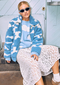 Jachetă fleece din lână merinos - Teddy Blue Cow