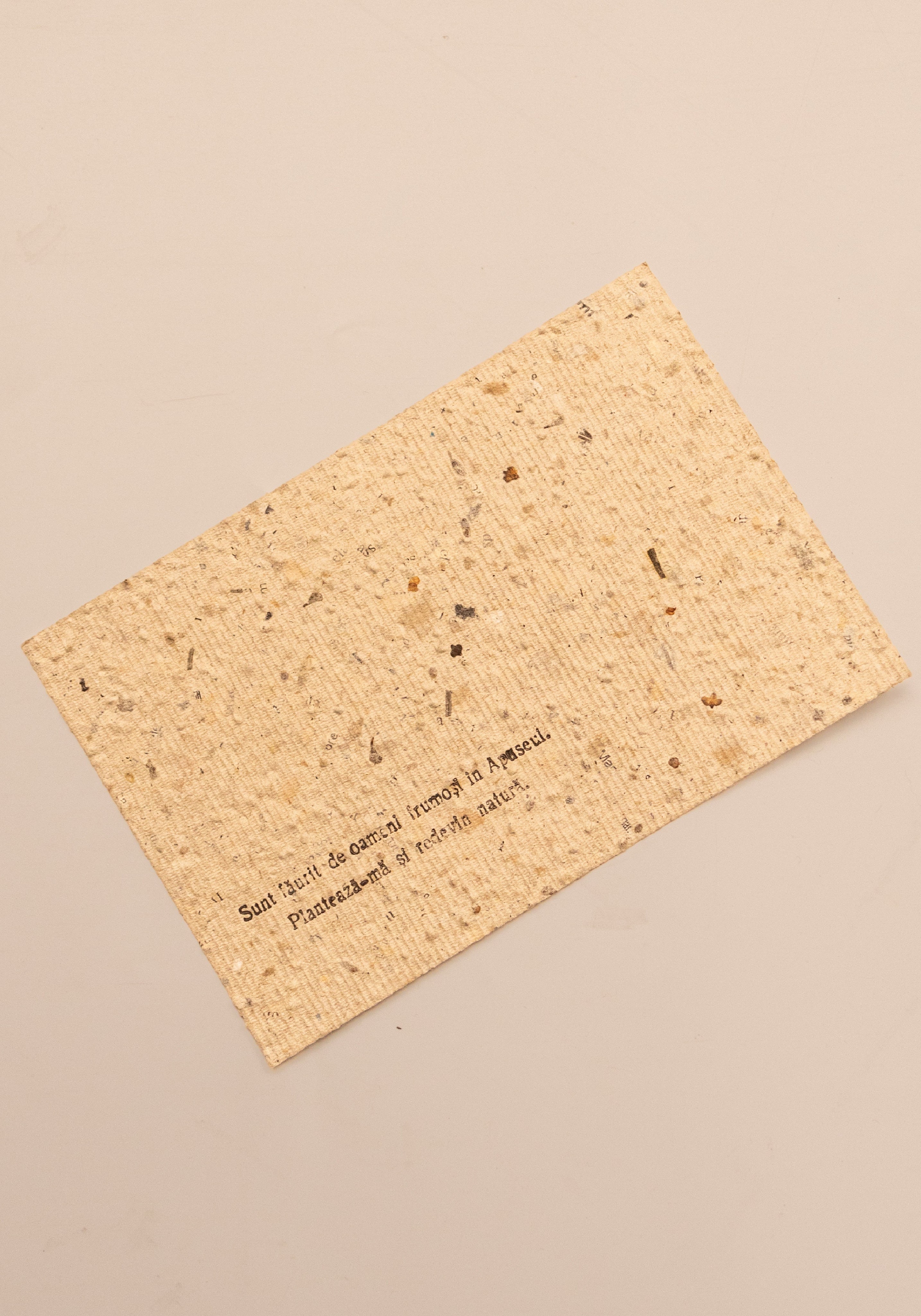 Felicitarea se poate planta pentru că este presărată cu semințe de flori.