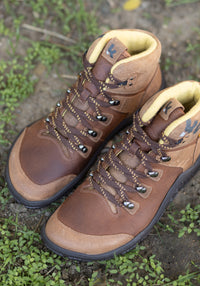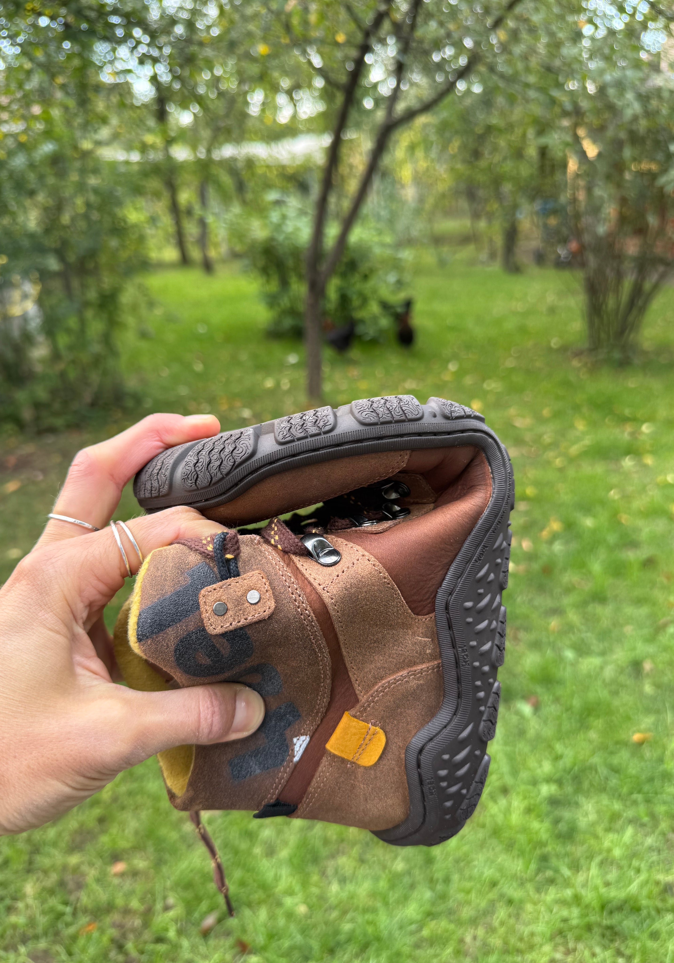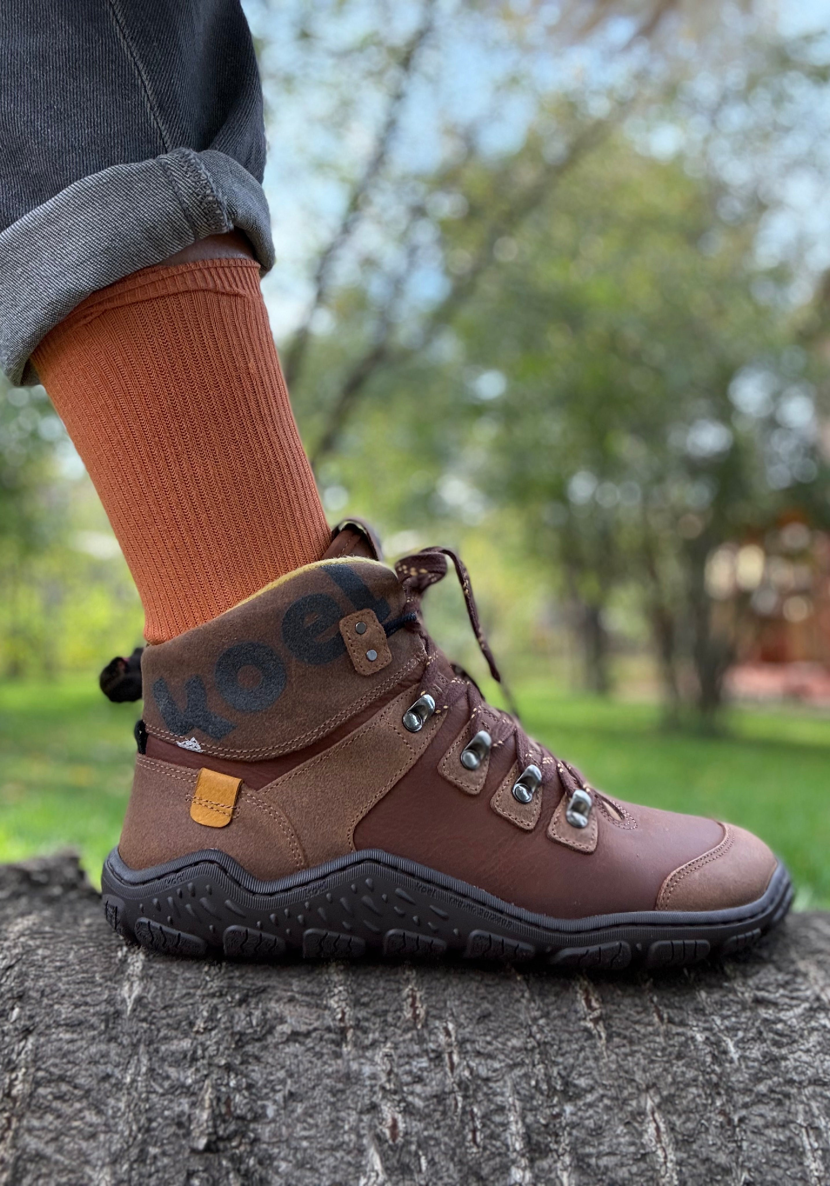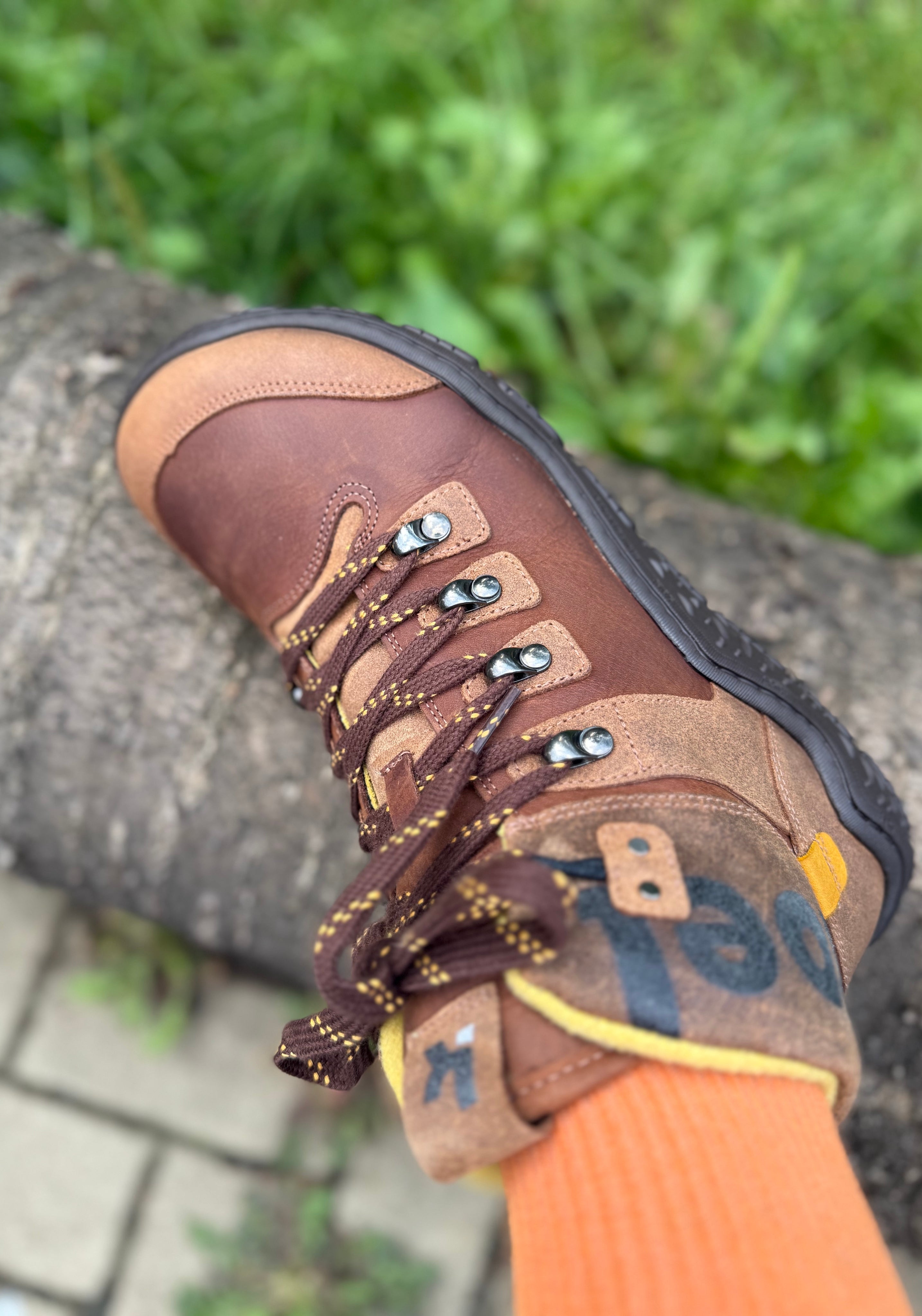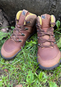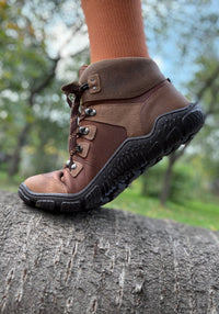 Ghete de drumeție barefoot din piele naturală cu tratament water-repellent, căptușite cu lână merinos feltuită. Le recomandăm în special pentru toamnă și iarnă.