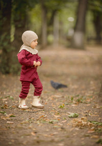 Cizme scurte pentru primii pași din cauciuc natural, căptușite cu lână, izolează foarte bine și mențin picioarele uscate și calde. Le recomandăm în special pentru toamnă târzie și iarnă.