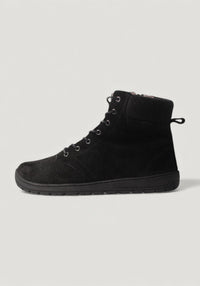 Ghete barefoot din piele întoarsă, căptușite cu lână merinos feltuită. Le recomandăm în special pentru toamnă târzie și iarnă.