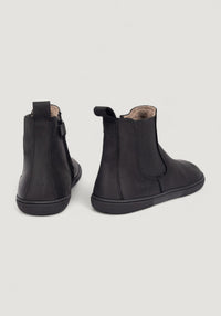 Chelsea Boots în stil barefoot, realizate din piele naturală cu tratament water-repellent, căptușite cu lână merinos feltuită. Le recomandăm în special pentru toamnă și iarnă.