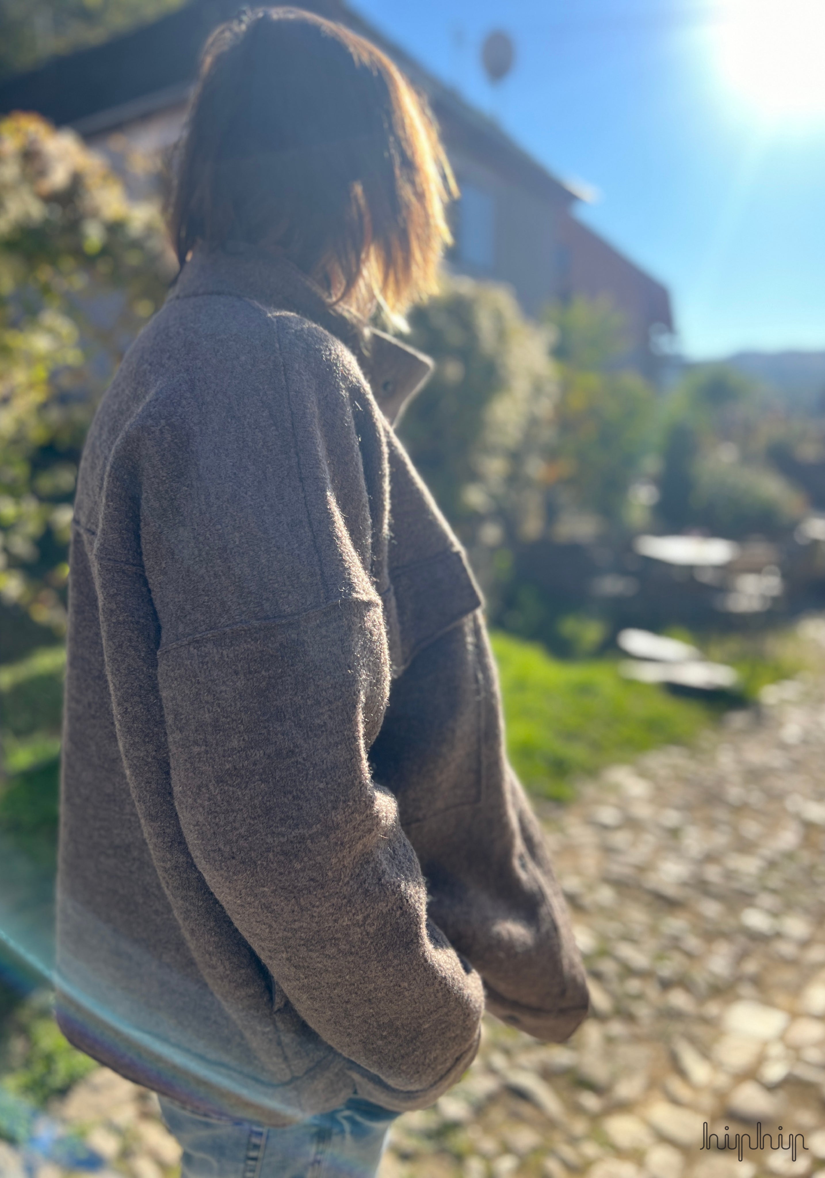 Palton elegant din lână fiartă organică, ușor și călduros.