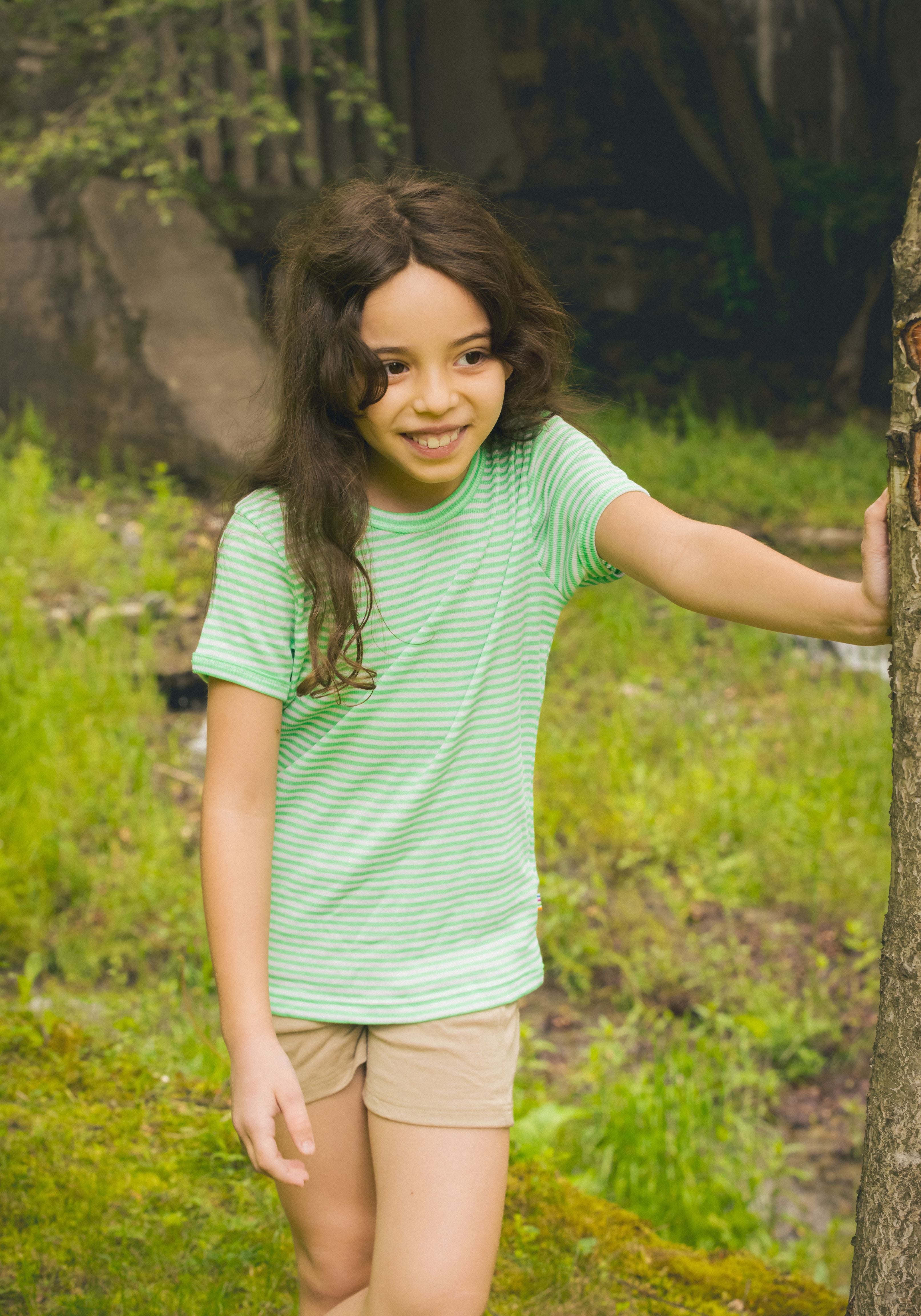Tricou din lână merinos și mătase - Green Stripe