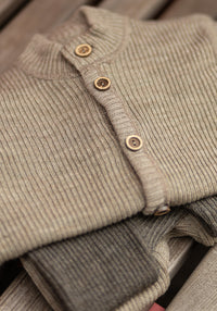 Cardigan lână merinos - Rib Beige Melange