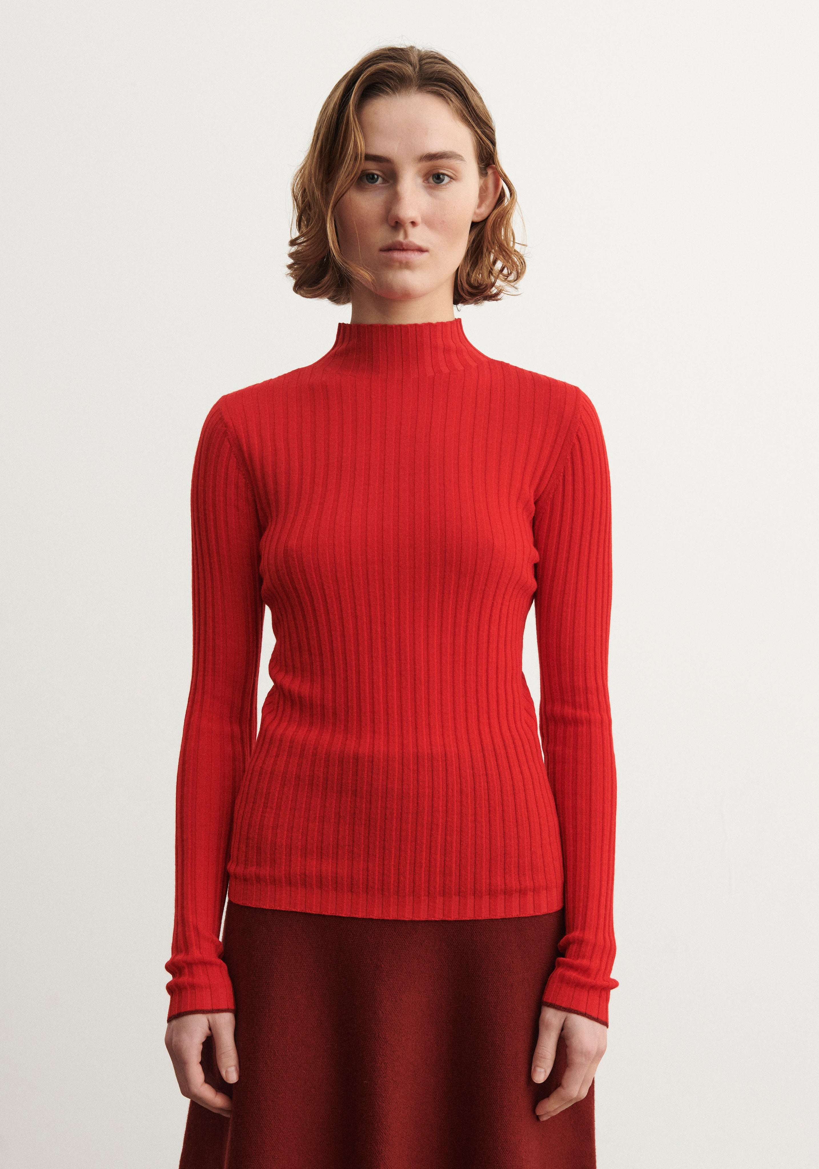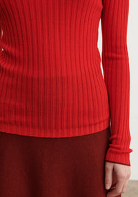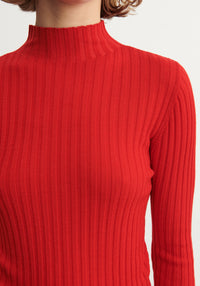 Helancă din lână merinos - Rib Extrafin Signal Red