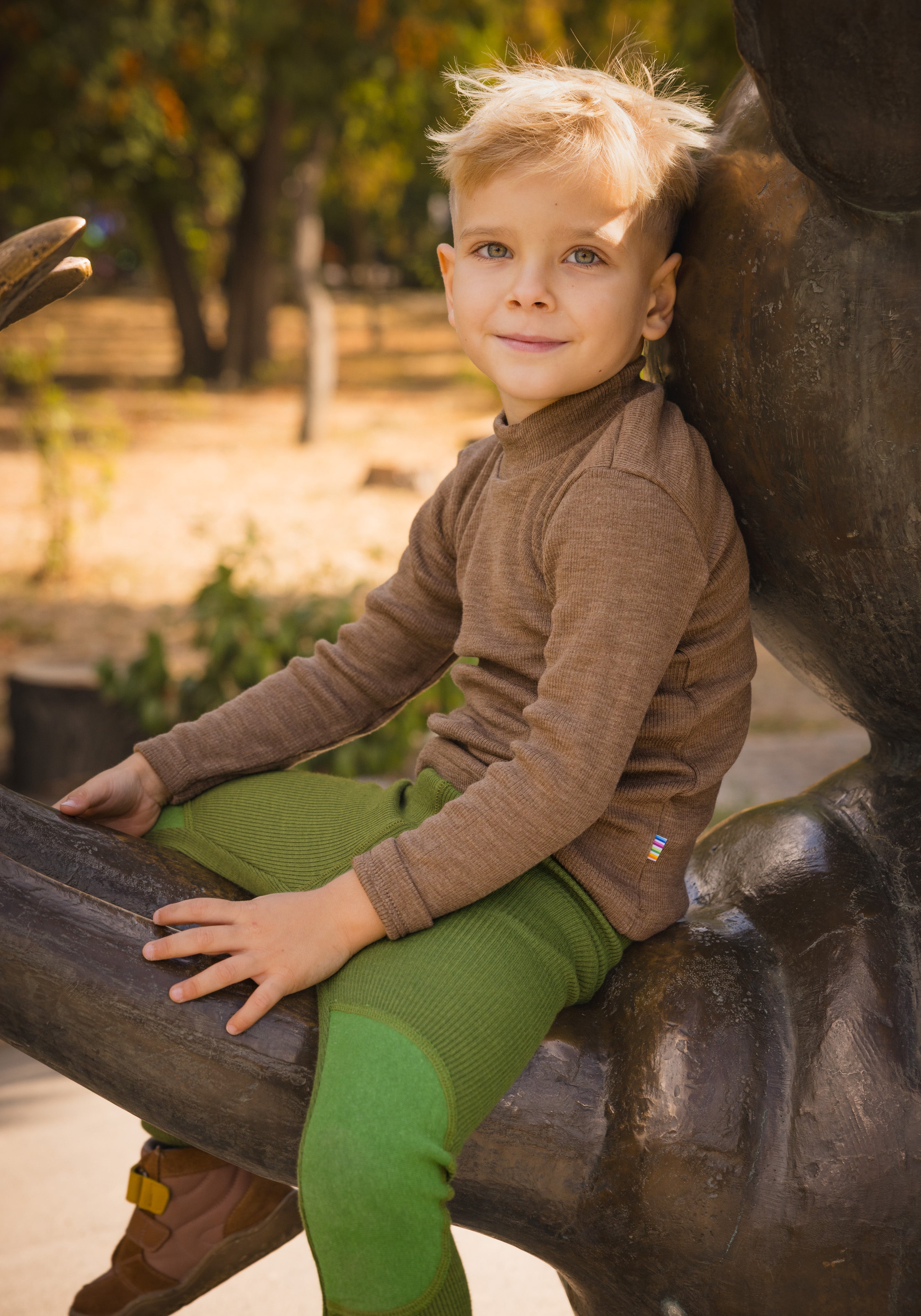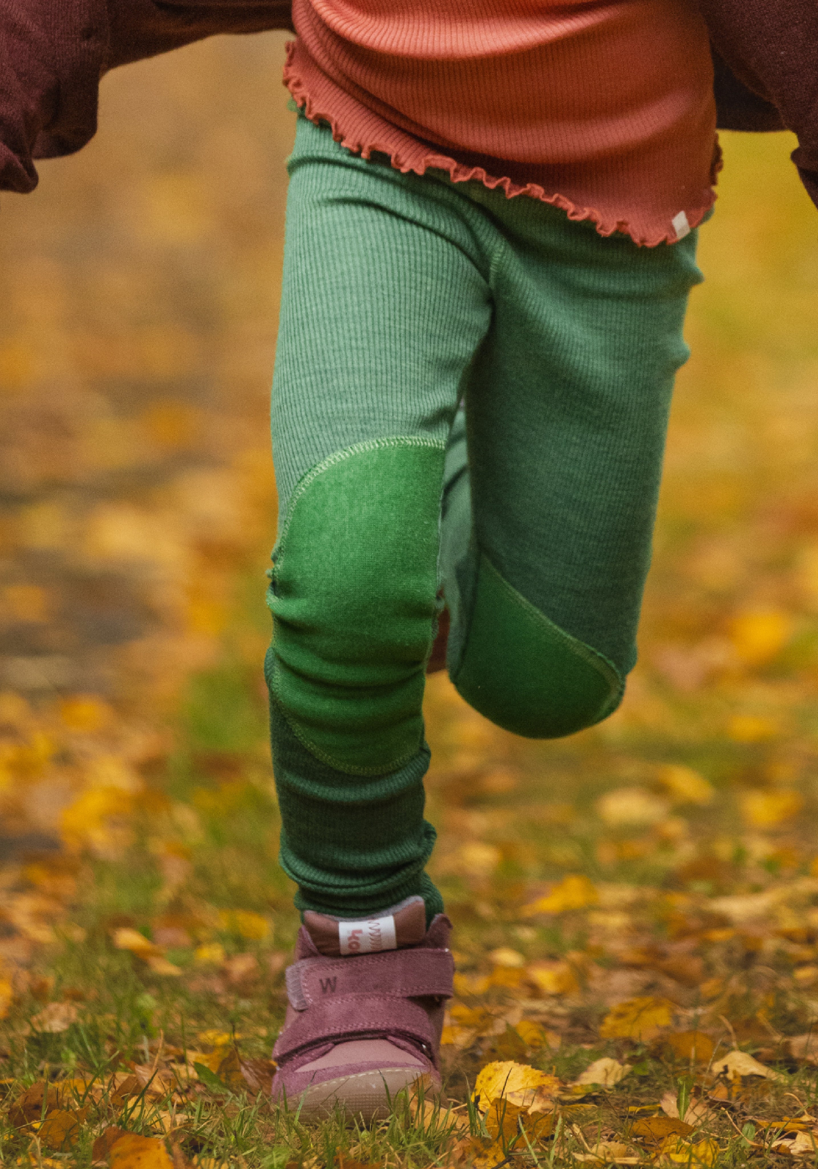 Colanți cu protecții genunchi din lână merinos - Garden Moss Green