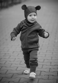 Costum întreg/salopetă din lână merinos, oferă caldură și libertate de mișcare.