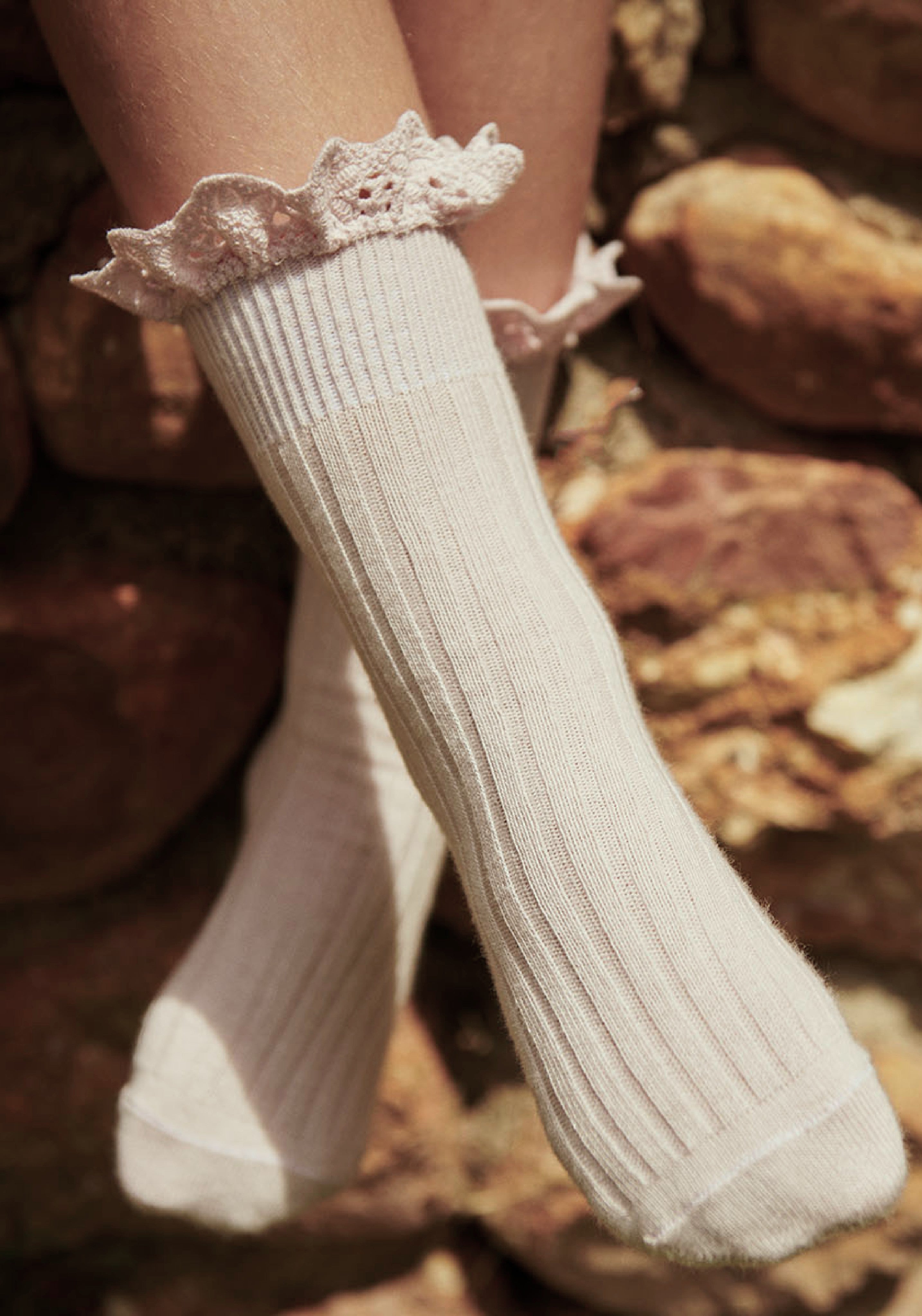 Șosete delicate din bumbac cu dantelă.