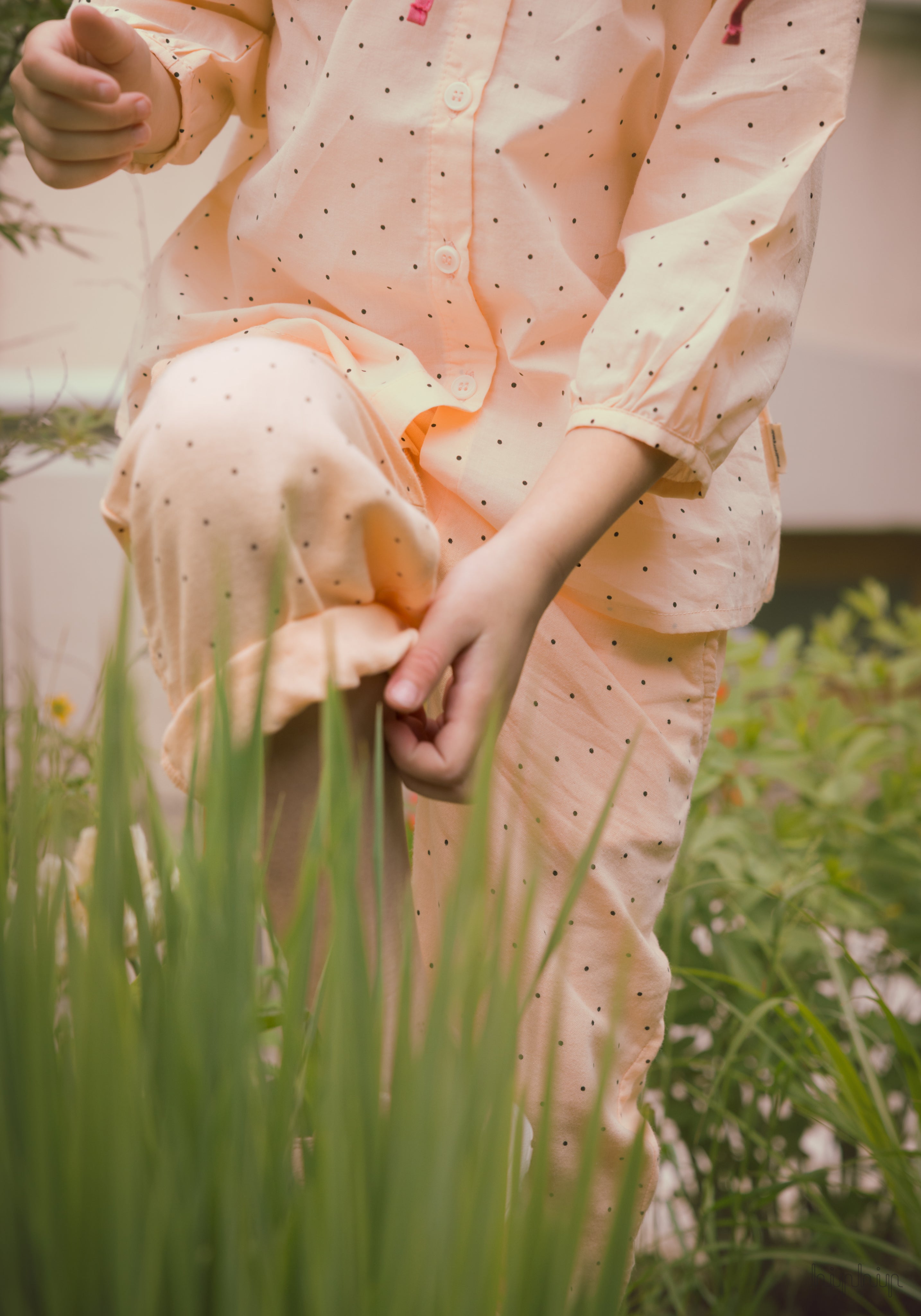 Pantaloni din muselină dublă de bumbac - Pomelos Points Bellini