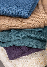 Lâna este un material delicat, “pretentios” ar spune unii, dar pentru cei care nu isi doresc prea multa bataie de cap, exista si lâna tratată pentru spalare (lana superwash, de ex.), care permite spalare si stoarcere la mașina: Joha, Mikk-line, FUB, MP Denmark, Smalls.