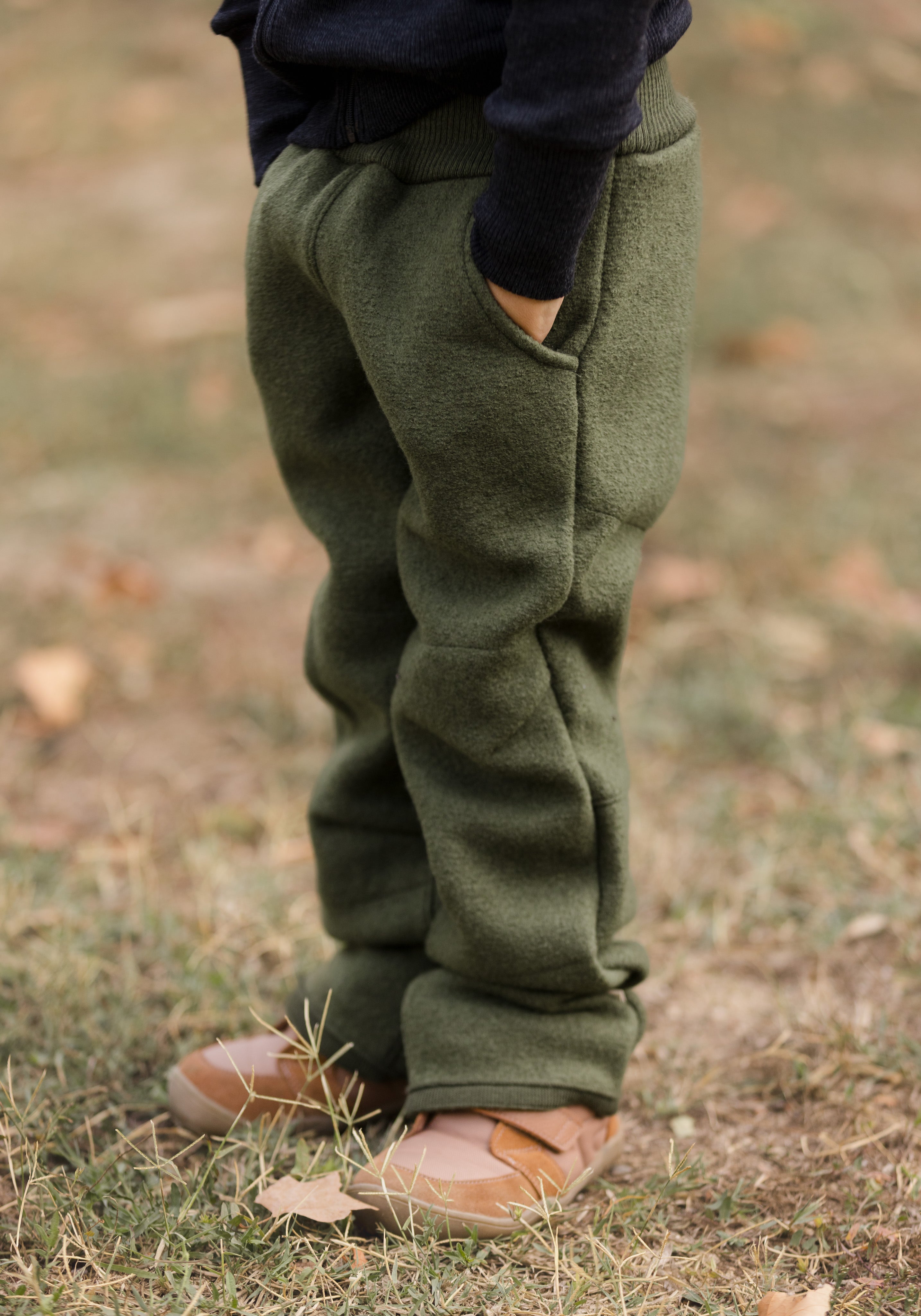 Pantaloni din lână fiartă merinos, potriviți pentru orice vreme.