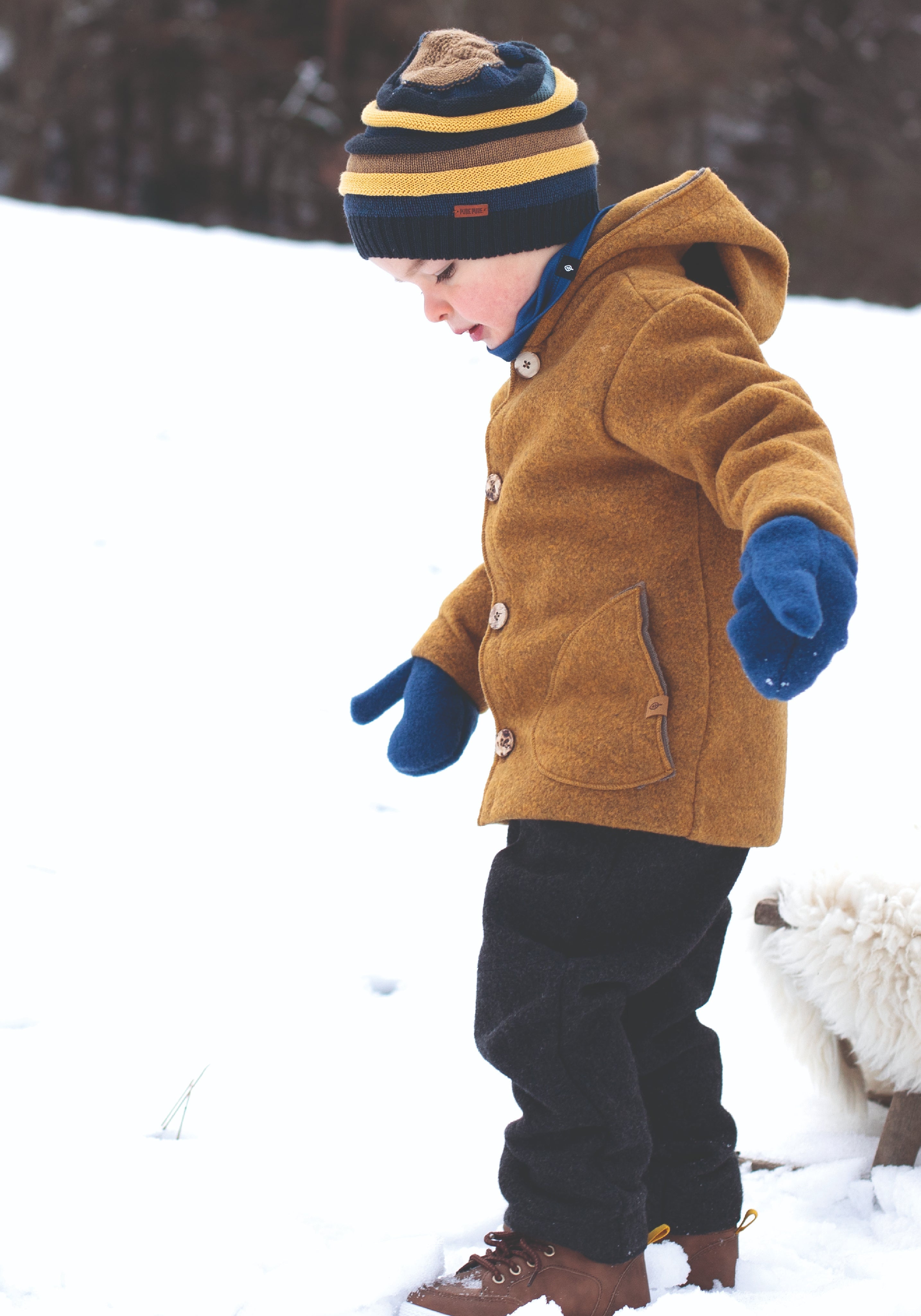 Pantaloni salopetă din lână fiartă reciclată, potriviți pentru orice vreme. Lâna este obținută din reciclarea puloverelor, iar fibrei obținute i se adaugă poliamidă/nylon pentru durabilitate; fibrele nu sunt vopsite, astfel că pot exista mici diferențe în tonuri, în funcție de nuanța originală a lânii.