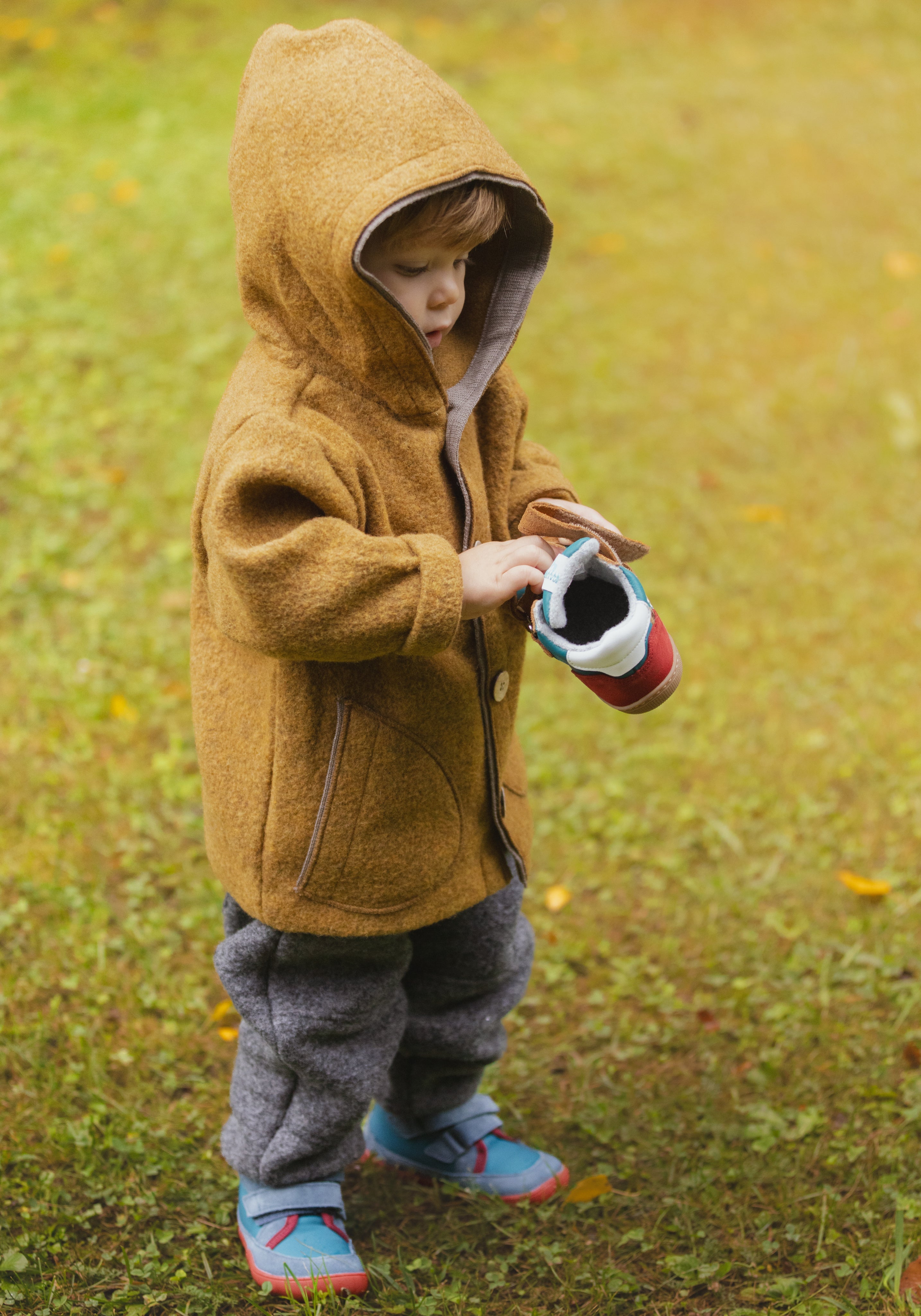 - 80% lână virgină organică, 20% bumbac organic; knit boiled wool