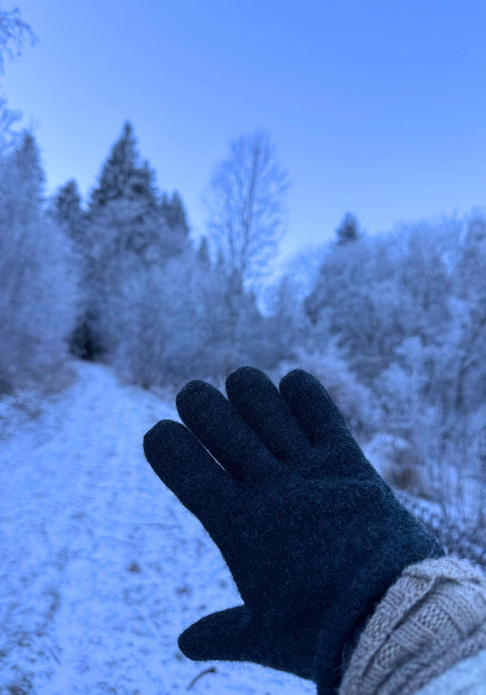 Mănuși bărbați din lână merinos fiartă- Black