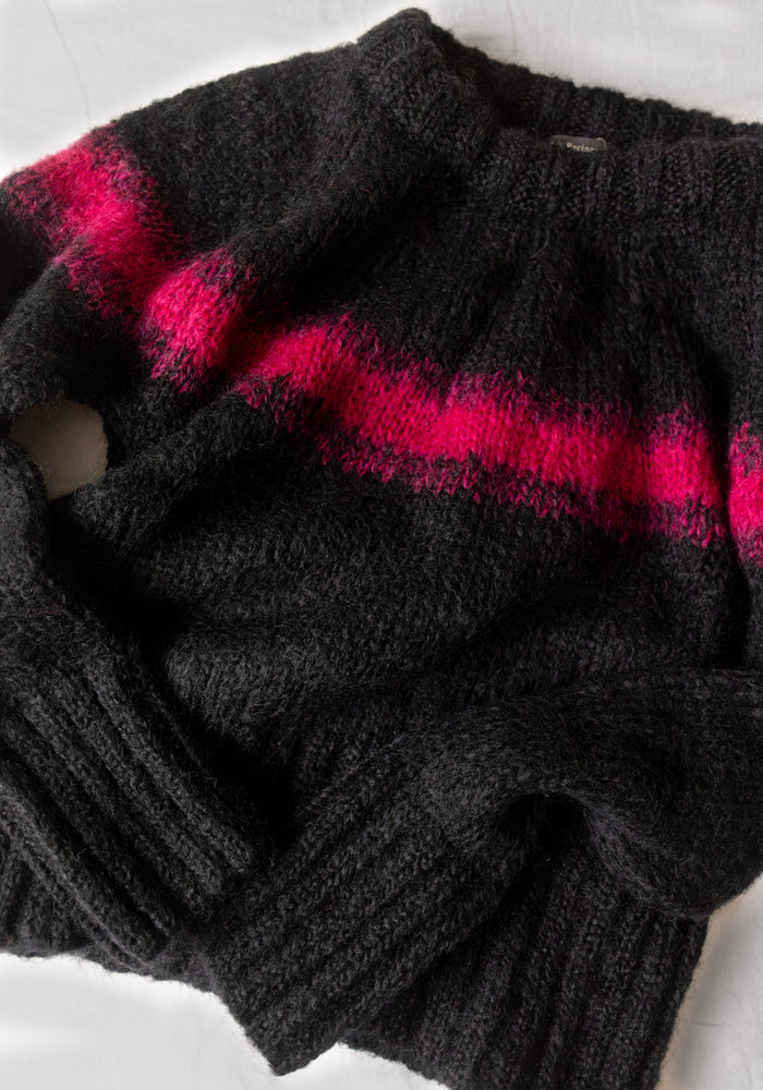 Pulover femei mohair și lână merinos - Ilka Black/Pink
