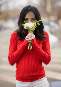 Helancă din lână merinos - Rib extrafin Signal Red