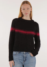 Pulover femei mohair și lână merinos - Ilka Black/Pink