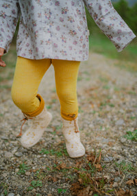 Colanți seamless din lână merinos organică, bumbac organic și mătase.
