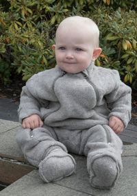 Salopetă cu mănuși și botoși fleece din lână merinos - Sesame Melange