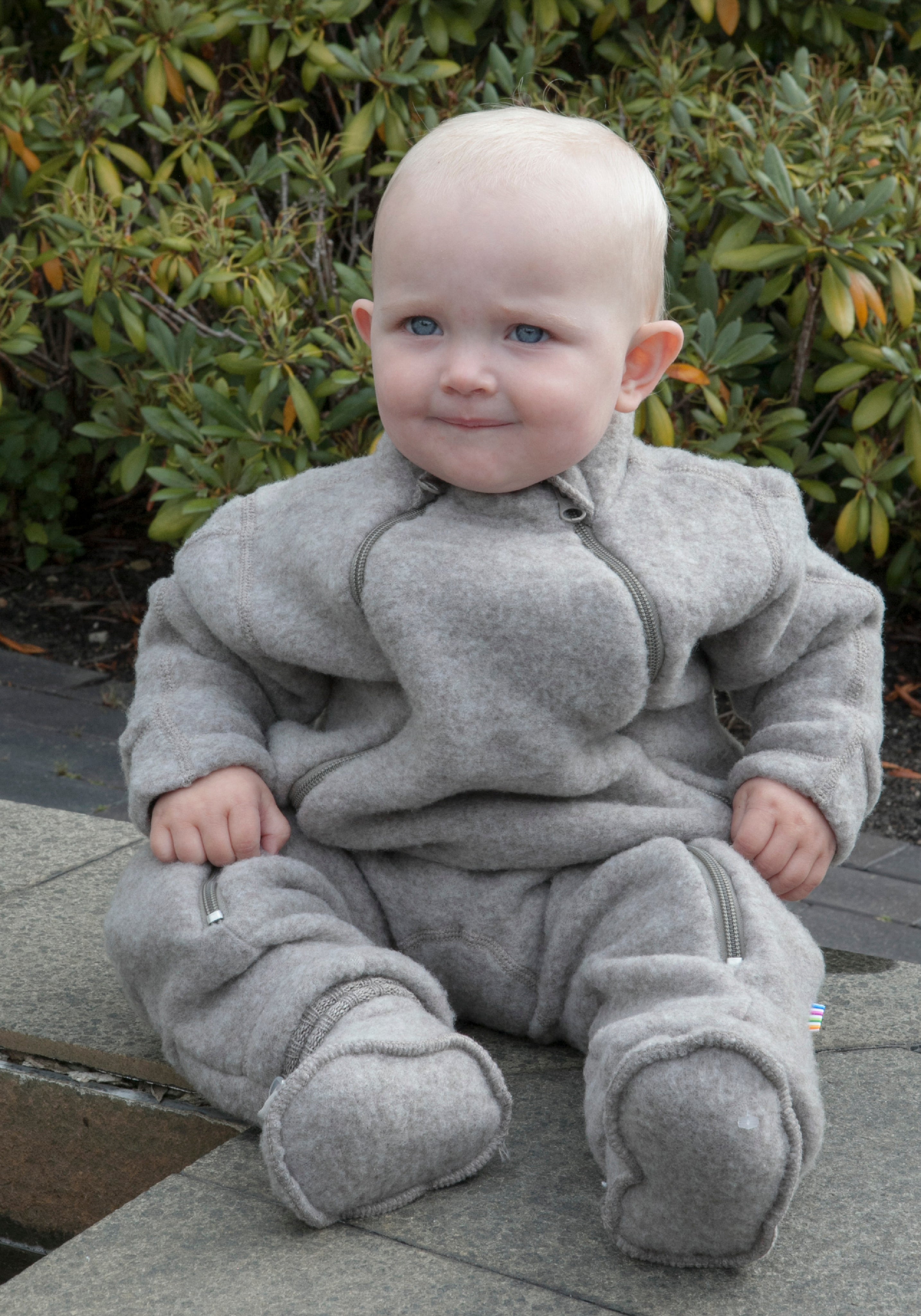 Salopetă pufoasă și călduroasă din lână merinos fleece, este ideală ca strat intermediar sau ca atare toamna.