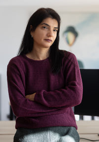 Pulover din lână fină și rezistentă de baby alpaca, potrivit pentru pielea sensibilă.