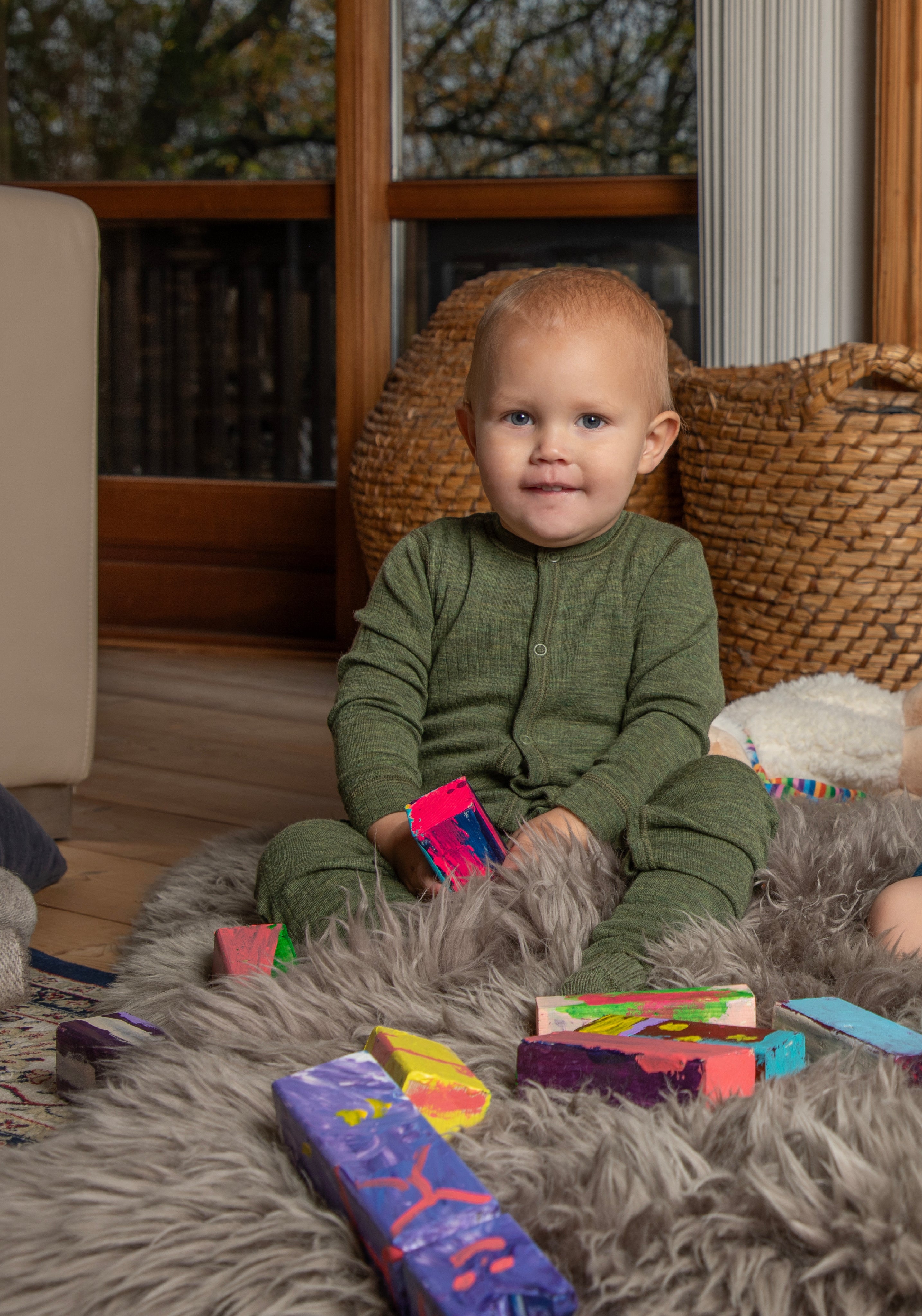 Salopetă cu șosete lână merinos - Basic Dark Olive
