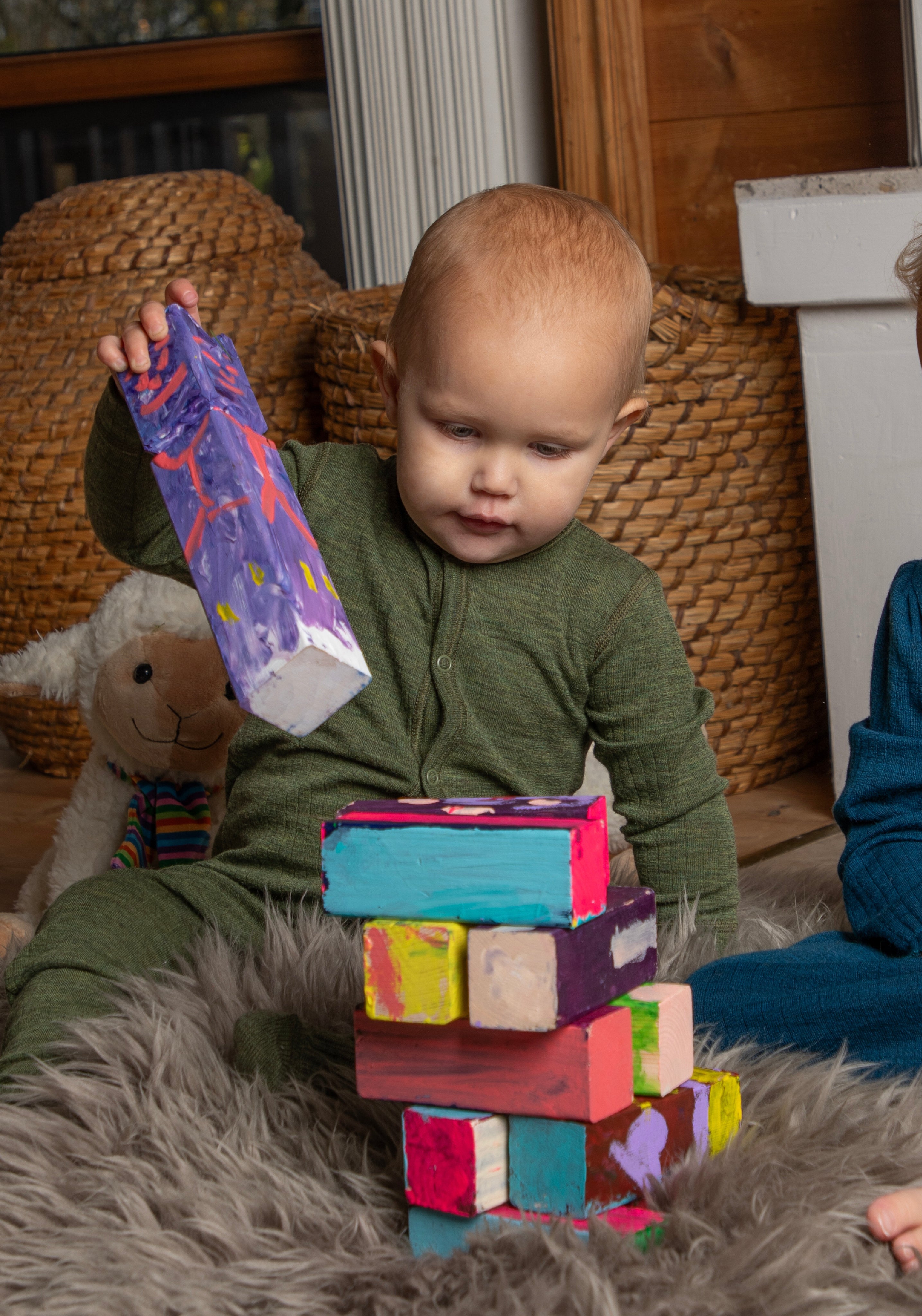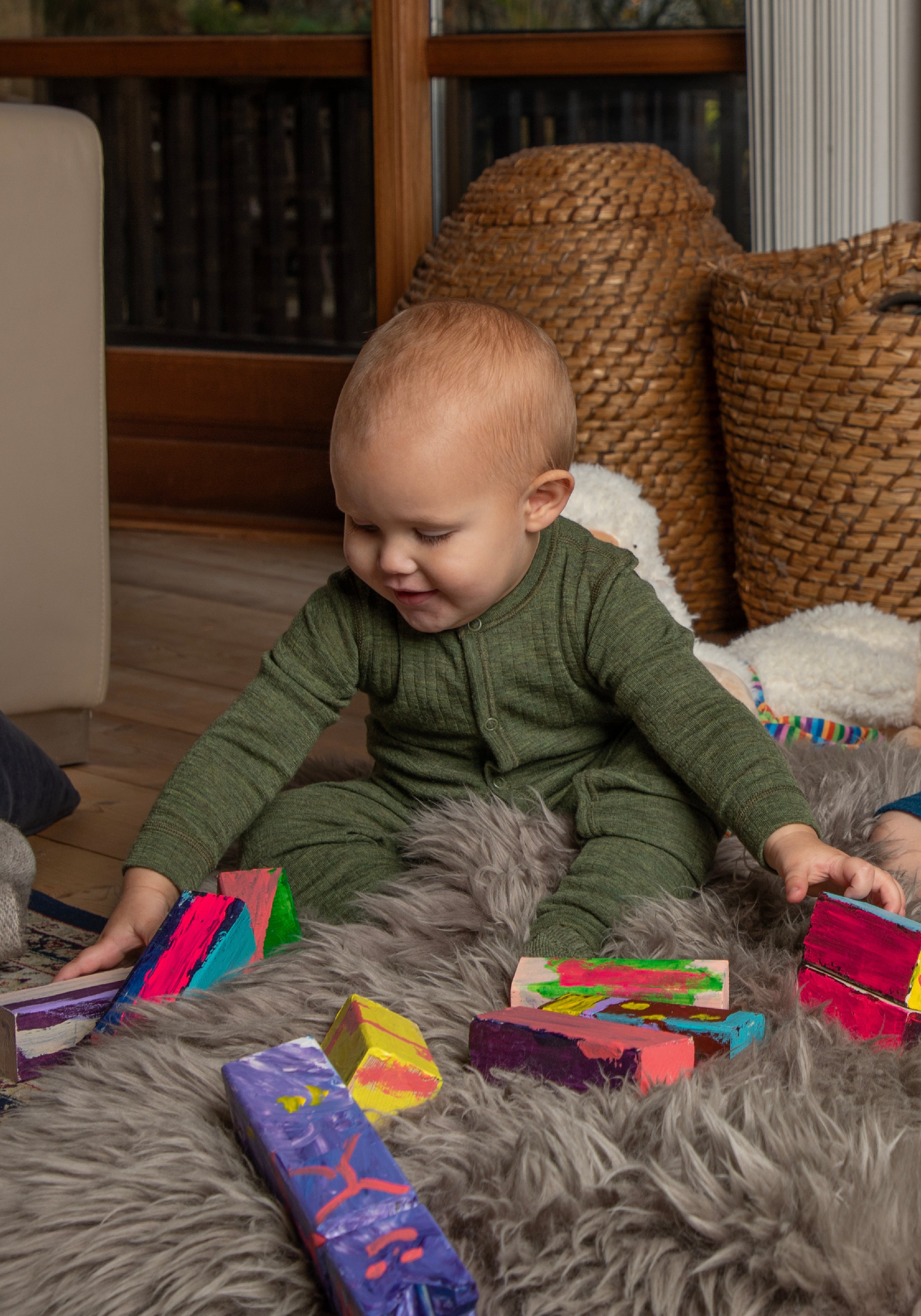 Salopetă întreagă din lână merinos fină, foarte moale şi călduroasă. Ideală atât pentru somnul liniștit de noapte, cât și pentru aventurile pline de joacă din timpul zilei.