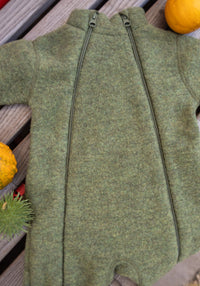 Salopetă cu mănuși și botoși fleece din lână merinos - Dark Olive
