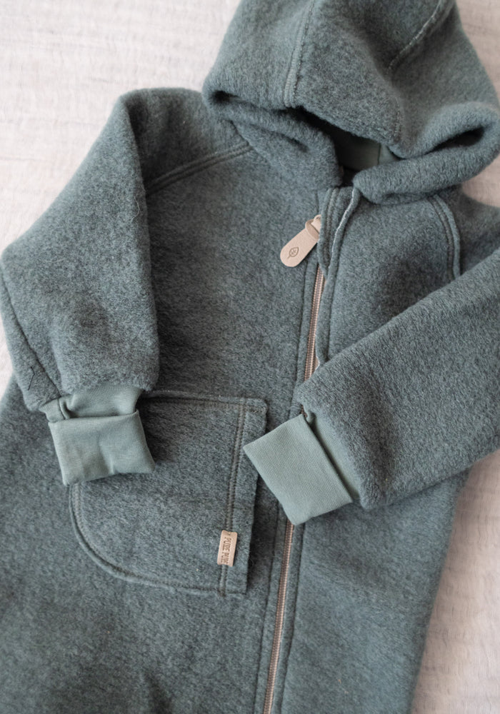 Salopetă cu mănuși și botoși fleece din lână merinos - Dark Olive