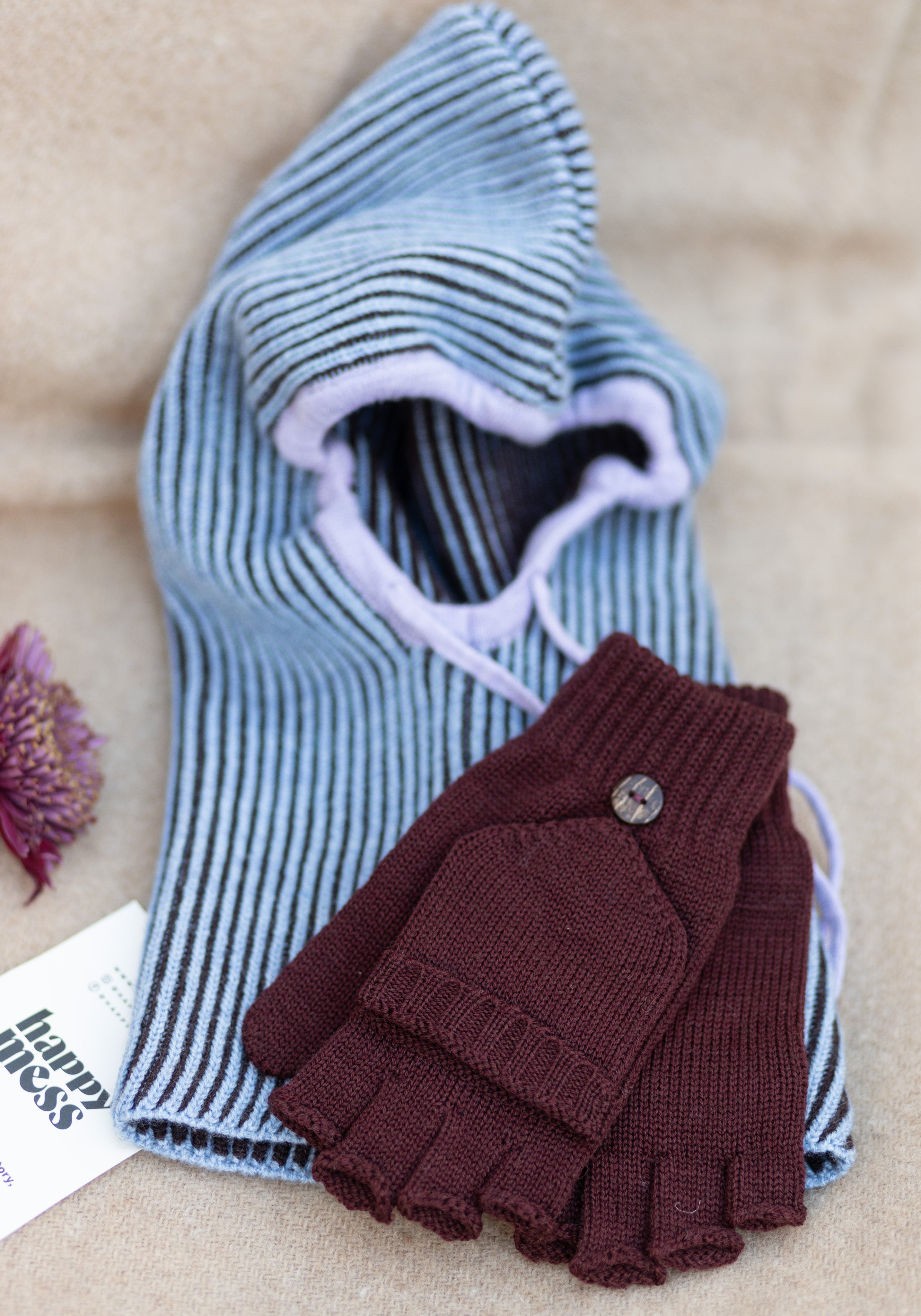 Mănuși femei cu clapetă din lână merinos - Burgund