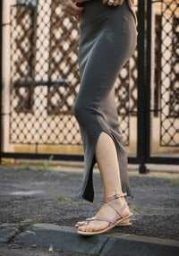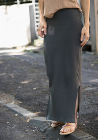 Fustă lungă din bumbac organic, cu efect de alungire a siluetei.