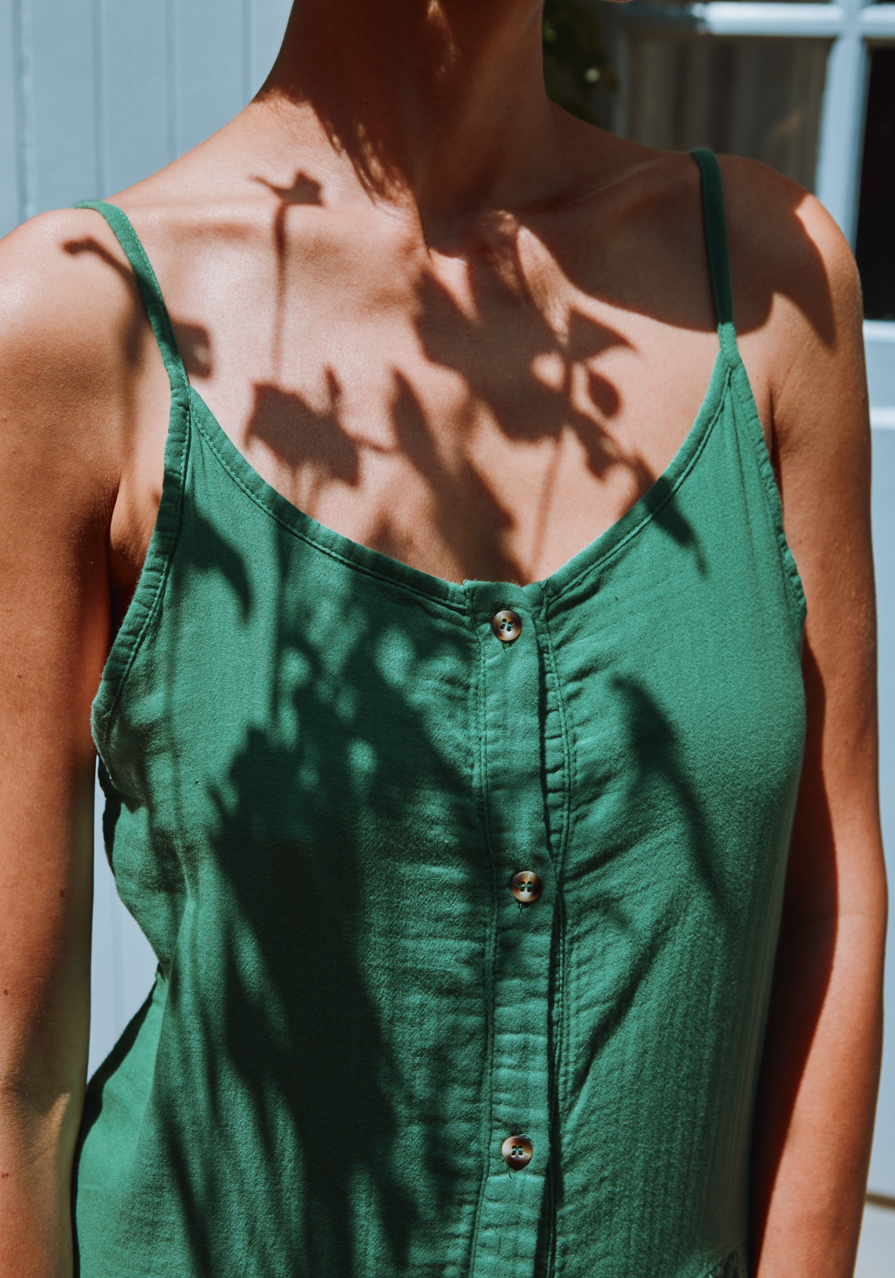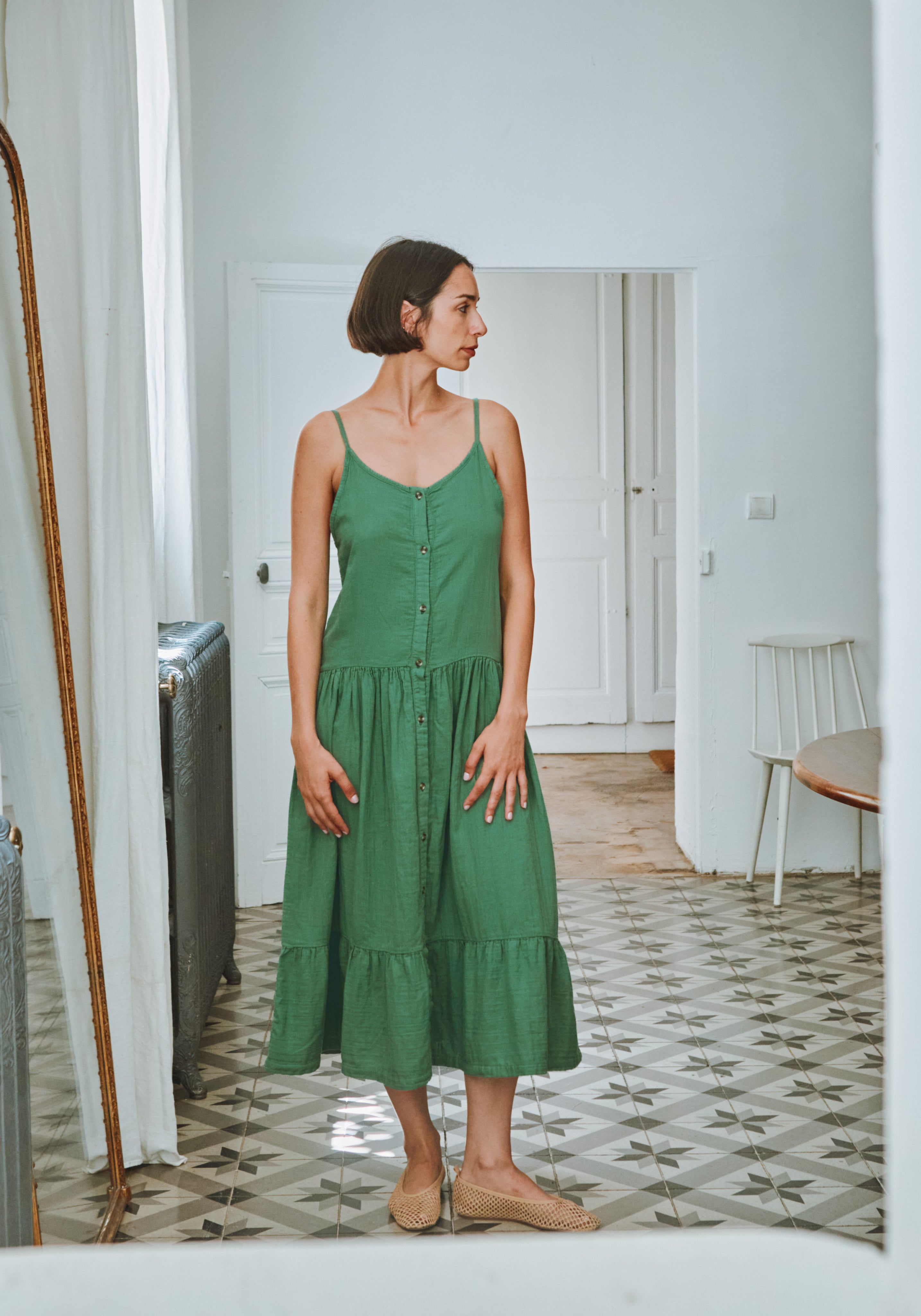 Rochie muselină dublă din bumbac - Celosie Deep Grass Green